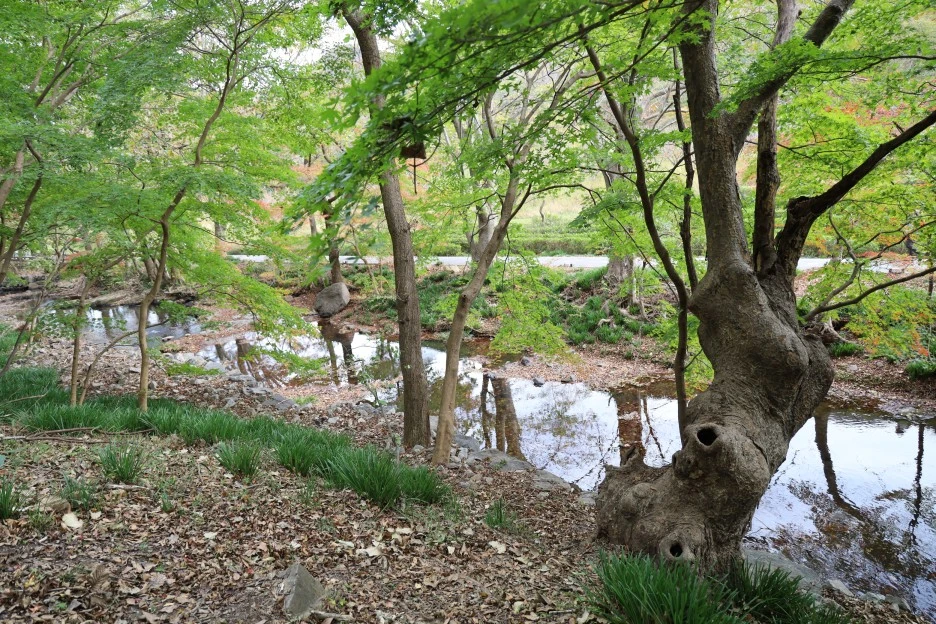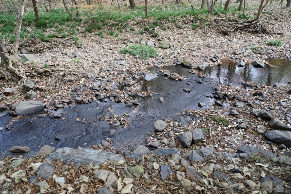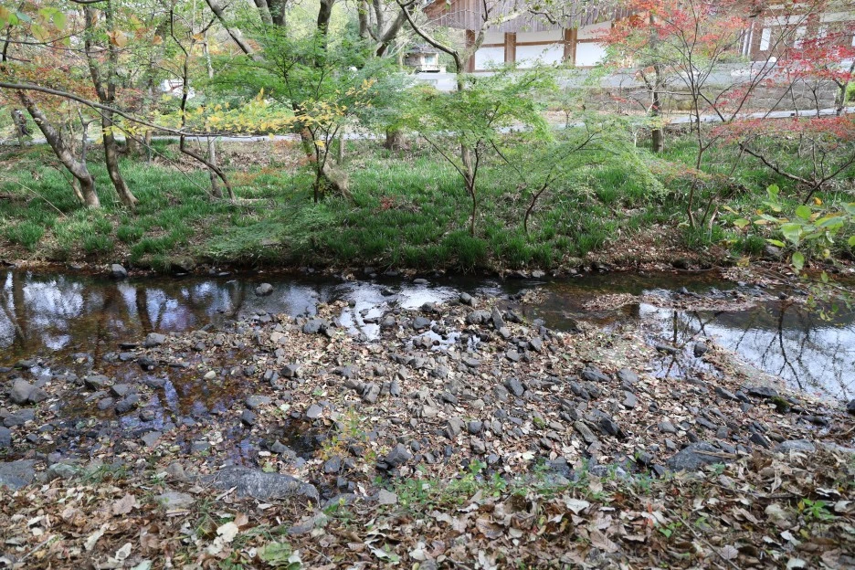 도솔천은 물빛이 유난히 검다. 도솔천 주변에 자생하고 있는 상수리, 떡갈나무 등 참나무들의 열매와 잎에 많이 포함되어 있는 타닌 성분이 바닥에 침착되어 생기는 현상이라는데, 이렇게 검은색을 띠는 것은 도솔천 말고는 본 적이 없다.