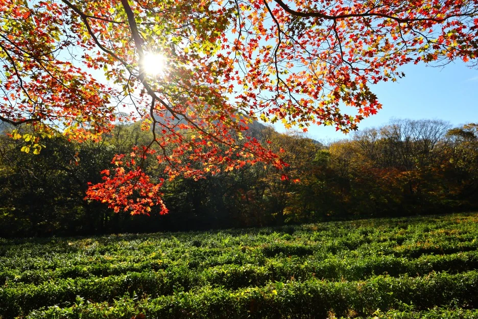 약하지만 붉은 단풍을 볼 수 있었던 녹차밭 주변에는 그럼에도 불구하고 가을의 정취를 담으려는 아마추어 사진작가들이 여럿 보여서 반가웠다.