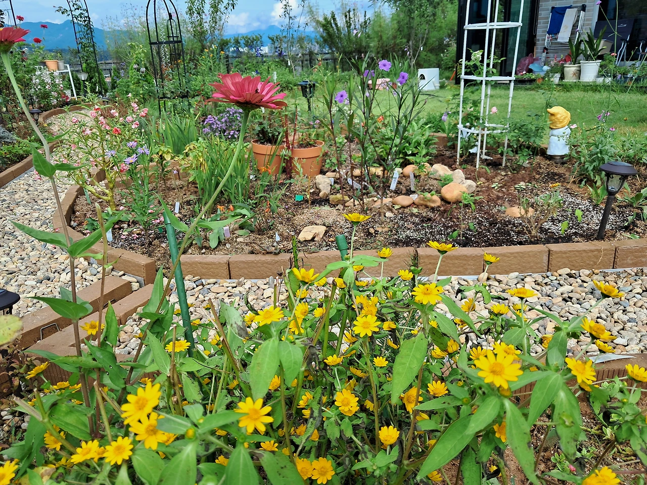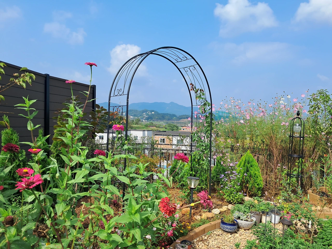 우리 집의 특징은 잔디밭보다 화단이 넓고, 폭이 넓은 화단 관리를 위해 오솔길을 만들고, 나무나 초화를 매우 다양하게 심은 것이다.