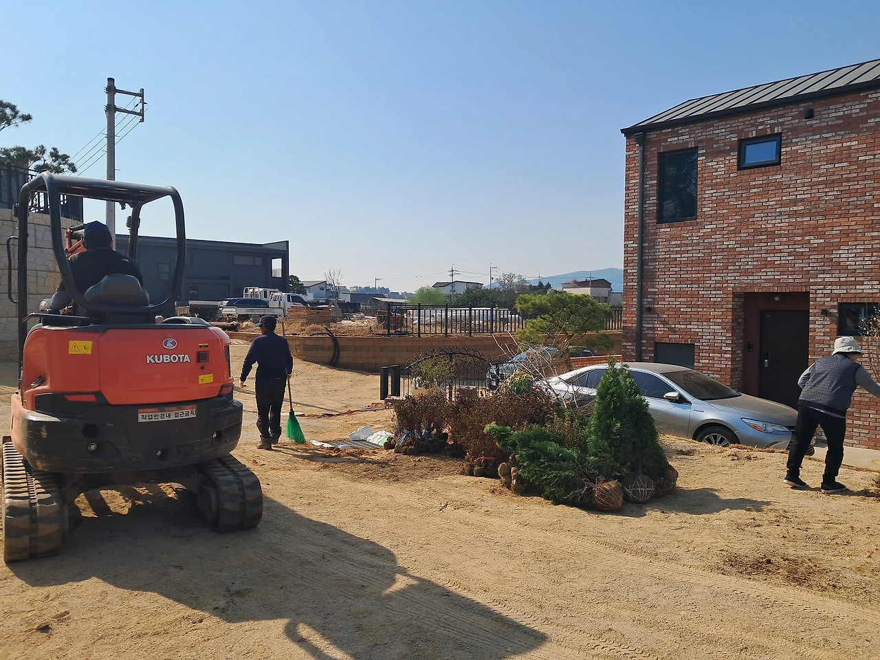 곧 완공하는 집이 궁금했는데, 잔디밭도 최소, 꽃밭도 최소로 하고, 큰 나무들을 많이 심고 있었다. 조경회사에 주문한 내용이 숲처럼 정원을 꾸미고 싶다고 했단다.