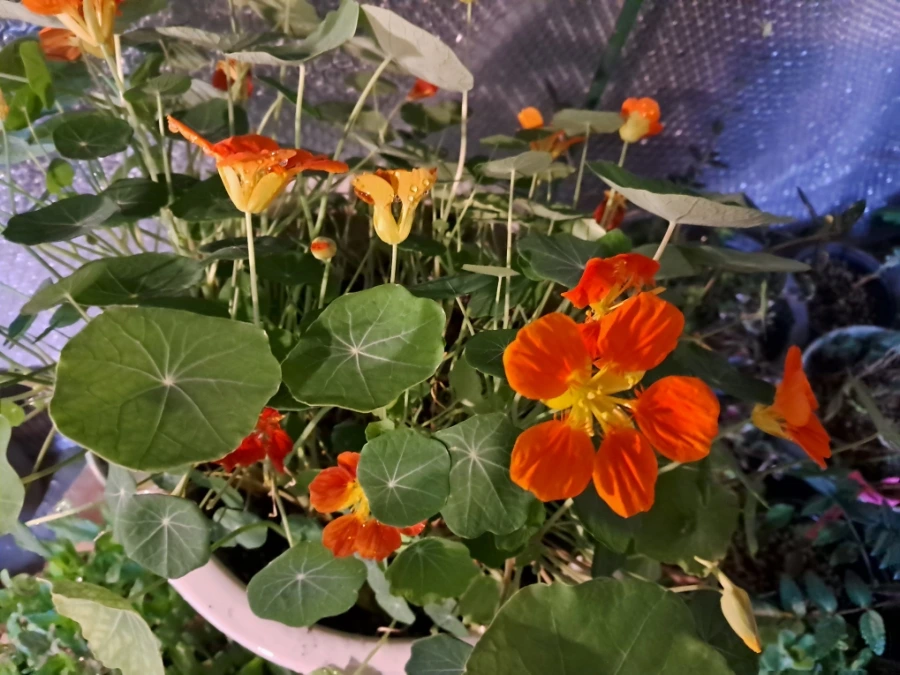 여름 꽃밭에서 피는 한련화, 비덴스,메리골드, 란타나도 썬룸에 집어넣고 계속 꽃 피게 해서 미안하다.
