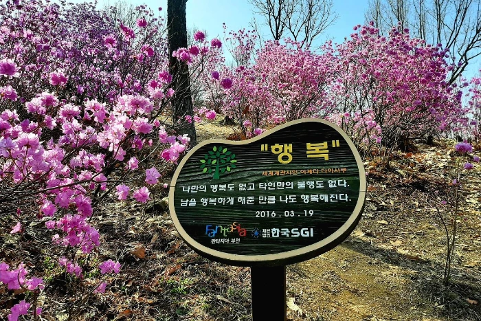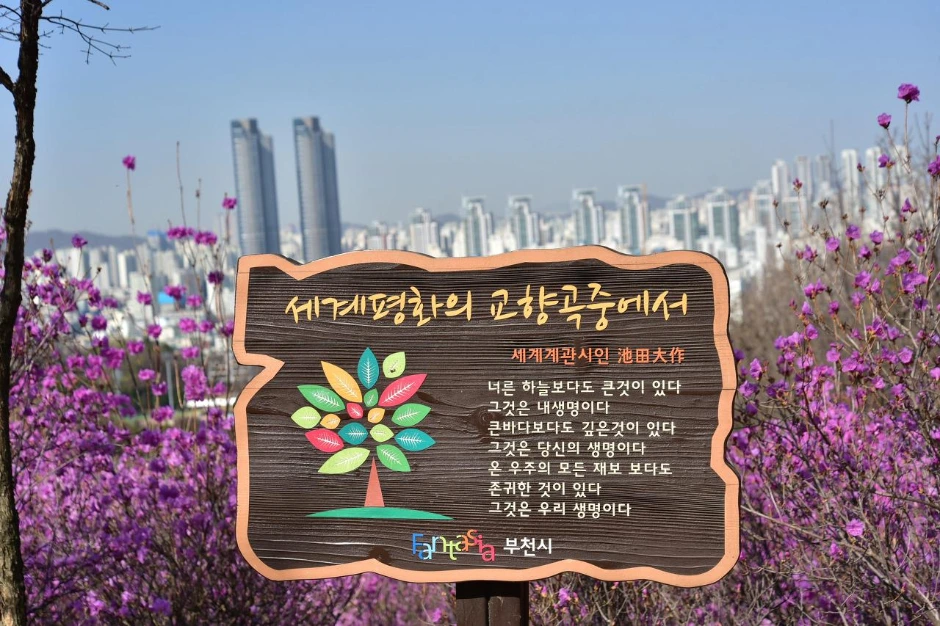 부천 원미산은 도시공원이다. 2001년에 개원하였다고 하는데, 진달래를 언제부터 심기 시작했는지 잘 모르겠으나 이곳저곳에 진달래를 식재한 기념석이 있는 걸 보니 꾸준히 심고 가꾸어서 오늘의 아름다운 모습을 갖춘 듯하다.