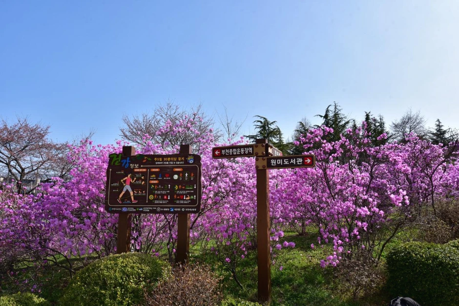 167m의 나지막한 원미산에 도시공원을 계획하기 전부터 진달래가 많았는지는 잘 알 수 없다. 산은 체계적인 계획을 세우고 장기간 정성으로 심고 가꾸었는지, 진달래 명산에 못지않는 아름다움을 뽐낸다.