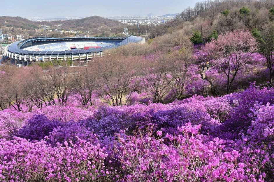 부천 종합 운동장의 모습도 진달래 동산 덕분에 더 멋지게 보인다.