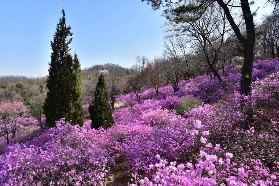 해마다 4월이면 진달래 축제를 열었는데, 코로나 때문에 축제를 취소하고 작년까지는 공원을 아예 폐쇄했단다. 다행히 올해는 축제 없이 공원만 개방한다고 하여 진달래 만개 소식을 듣고 방문하기로 하였다.