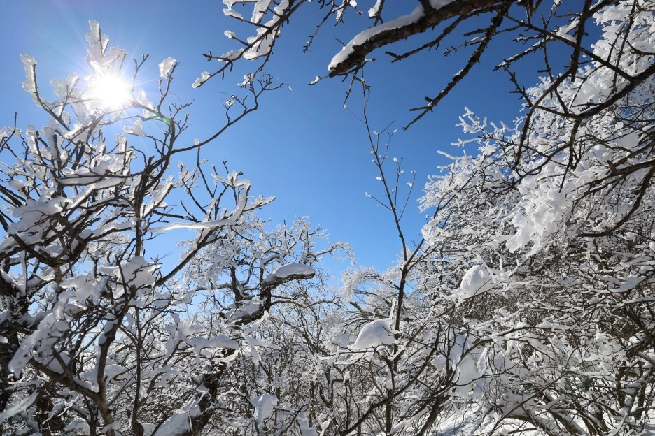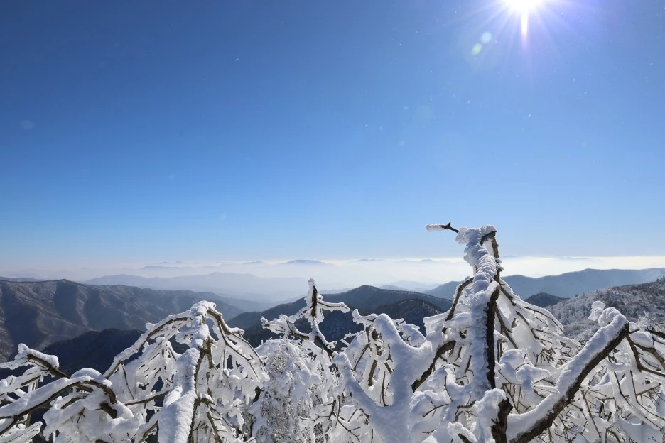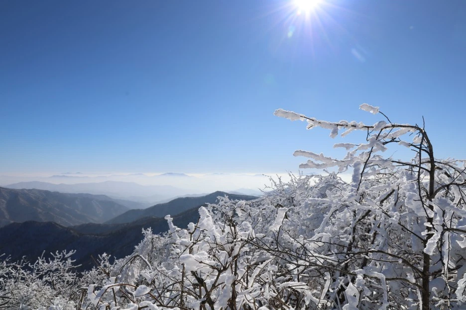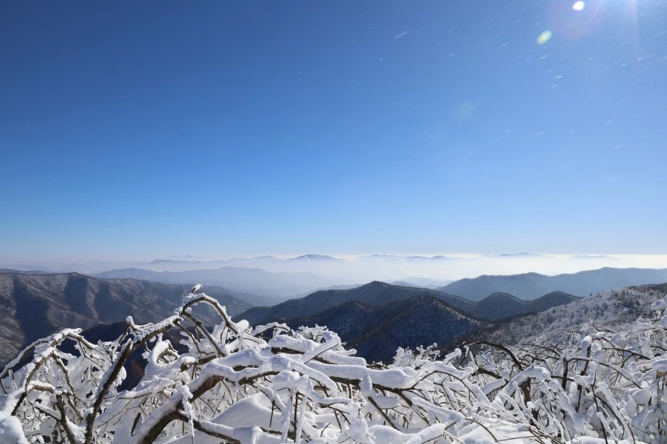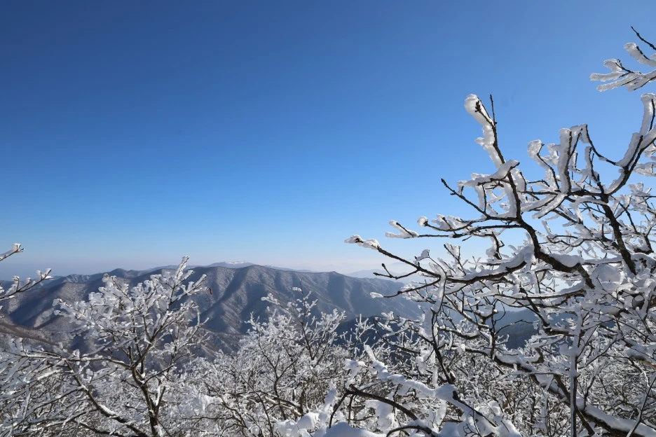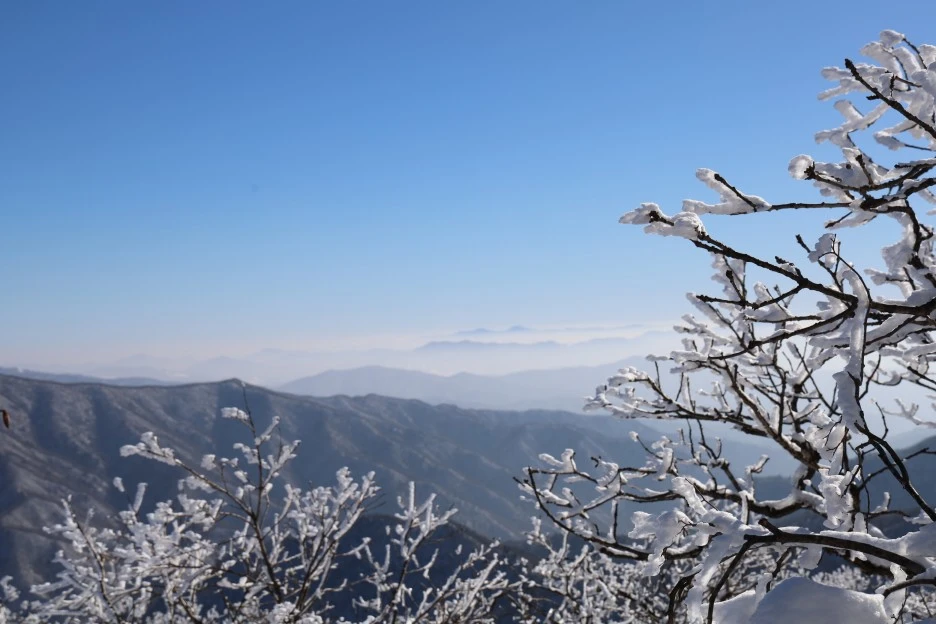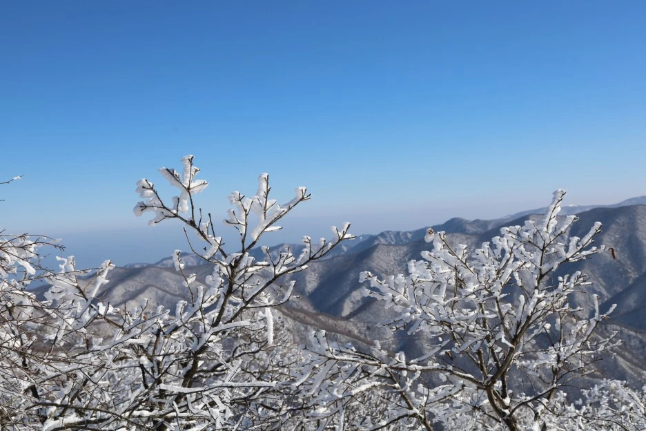 가지가 하얗게 눈꽃을 피우고 있다. 이 모습을 보려고 겨울 산을 오른다.
