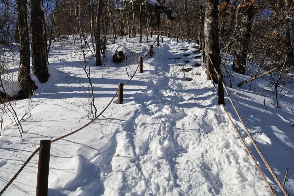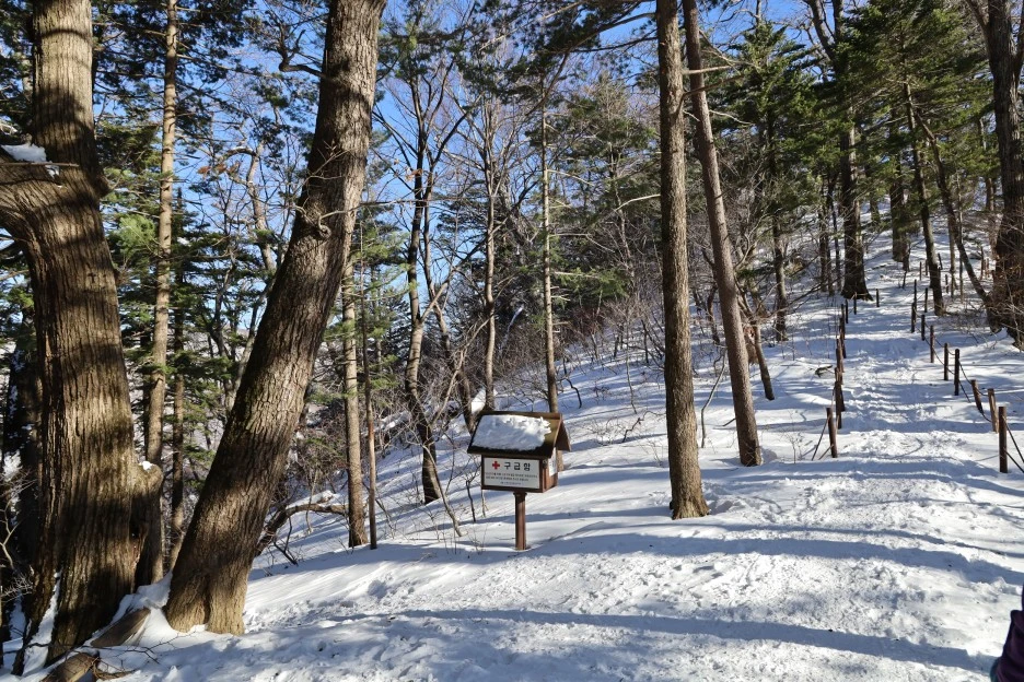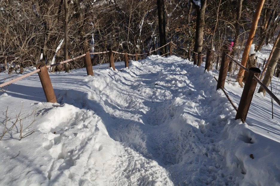 우리는 그렇다. 다져져서 잘 만들어진 눈길에 아이젠을 콱콱 박아가며 안전하게 겨울 눈 산행을 행복하게 즐기는 수준이다. 우리가 걷기 전에 눈길 등산로를 잘 만들어준 모든 이들에게 감사하다.