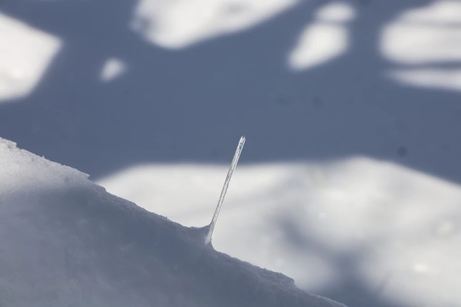 눈이 햇볕에 녹아 물이 되는 순간에 다시 얼어붙었을까? 눈꽃이 아니라 얼음꽃이다.