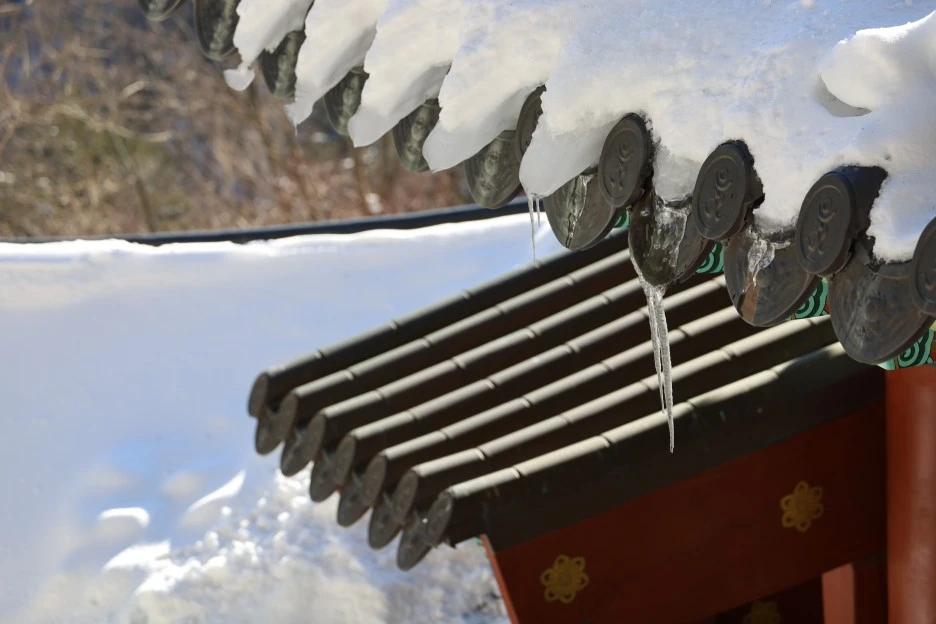 세조와 관련 있는 관대걸이도 흰 눈에 덮여있고,