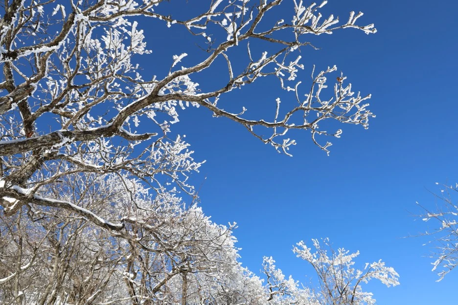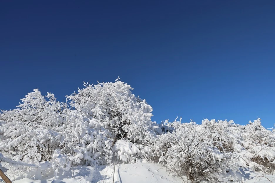 상고대라기보다는 눈이 얼어붙어 생긴 눈꽃에 가깝다.