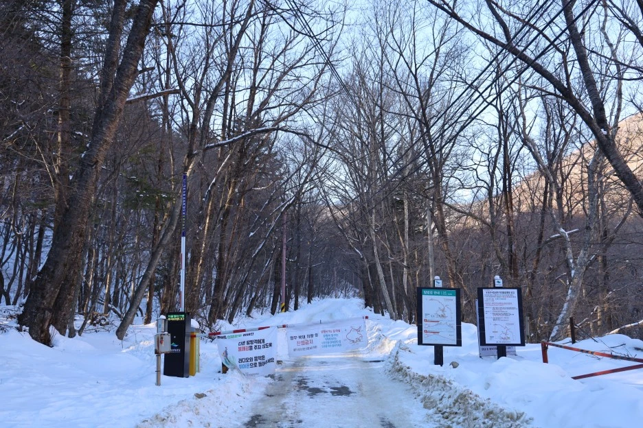 양평에서 출발할 때의 기온이 영하 4도였는데, 오대산 주차장에 도착했을 때 기온은 영하 13도였다. 다행히 바람이 별로 불지 않아서 체감 온도가 더 떨어지지는 않았는데, 오후에 바람이 많이 분다고 해서 보온을 철저히 했다.