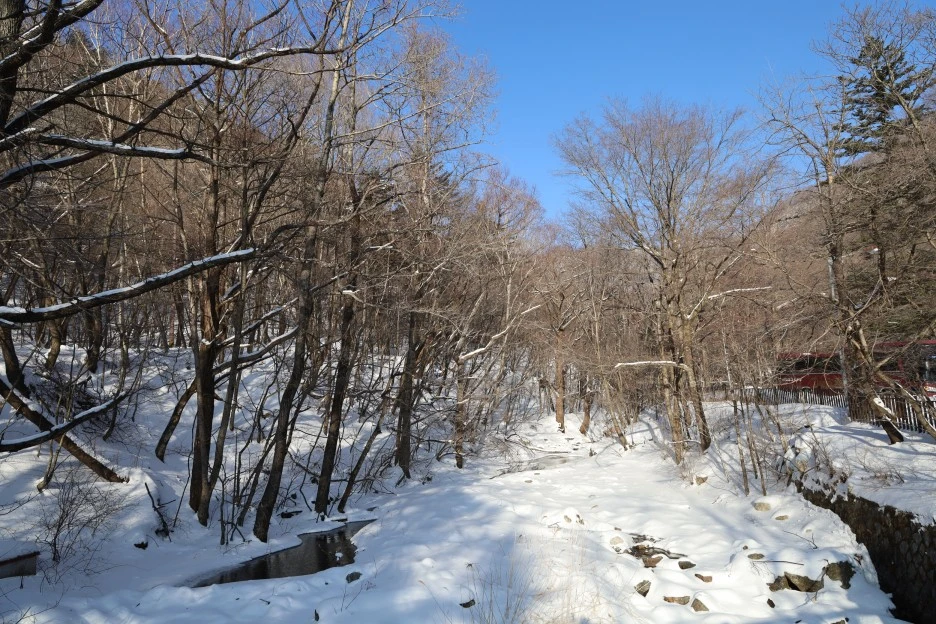 오대산에 눈이 얼마나 왔을까. 주차장 주변의 나무는 모두 눈을 털어버린 모습이었지만, 도로와 주차장만 겨우 제설을 끝냈을 뿐. 바닥은 흙도, 개천의 물도 거의 보이지 않는 하얀 세상이었다.