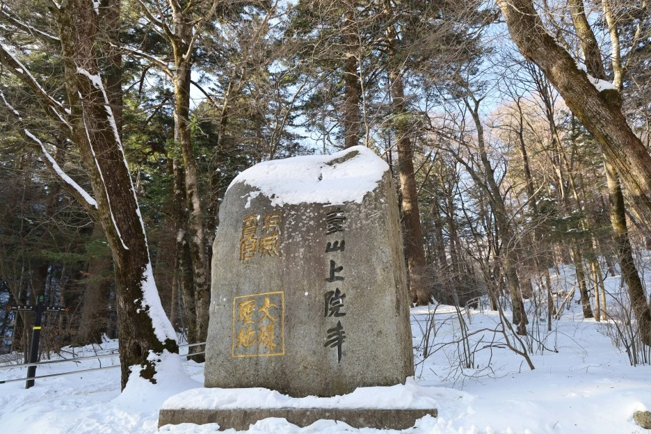 중대사자암 표지석도 머리에 하얗게 눈을 뒤집어썼다.