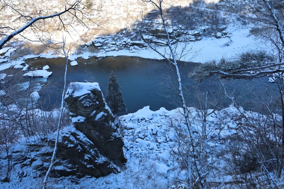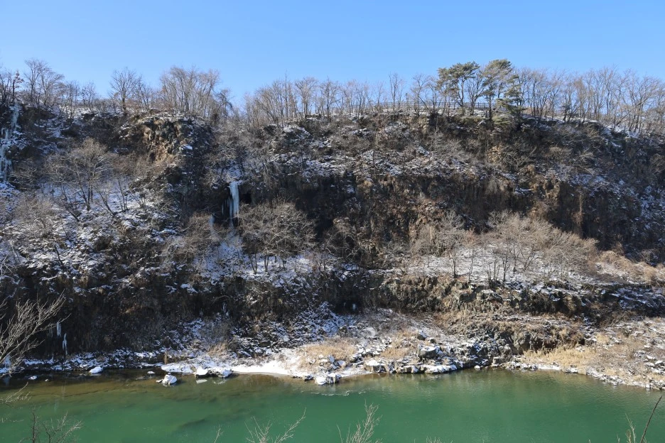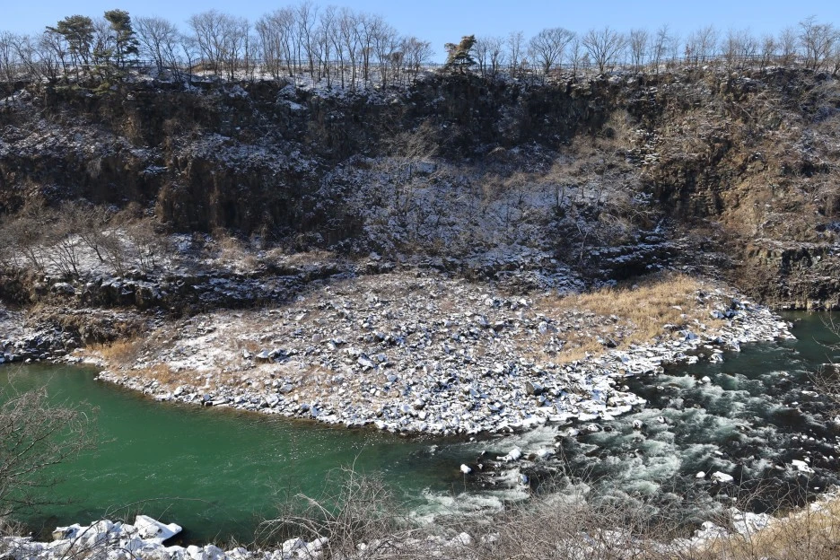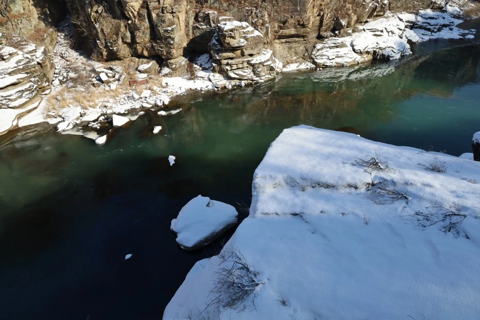 절벽 아래 눈 쌓인 바위는 고향 남강에서 보던 논개의 의암을 쏙 빼닮았다.