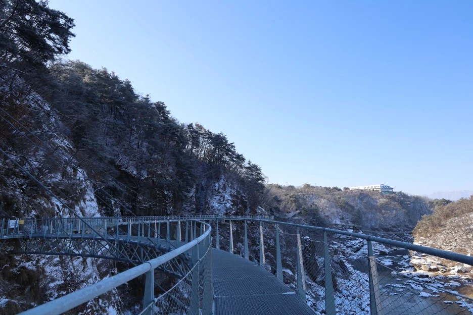 혹은 허공에 또는 절벽을 따라 만들어진 잔도를 따라 걷는다.