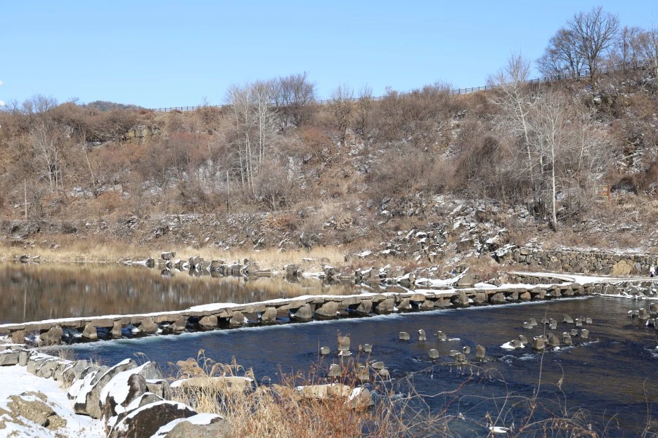 제주도에만 있는 줄 알았던 현무암이 이곳에도 있다고 한다. 현무암으로 만들어진 돌다리다.