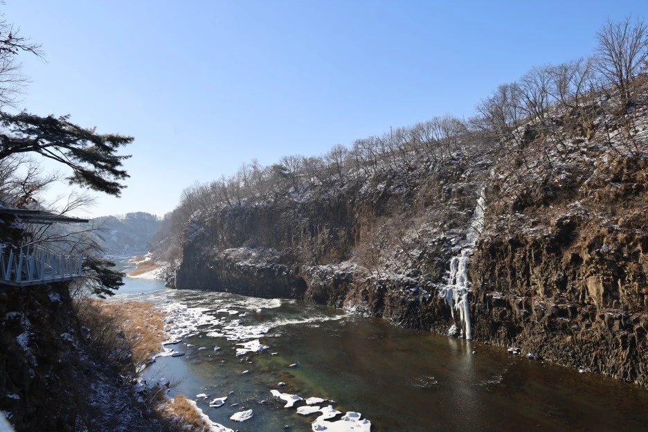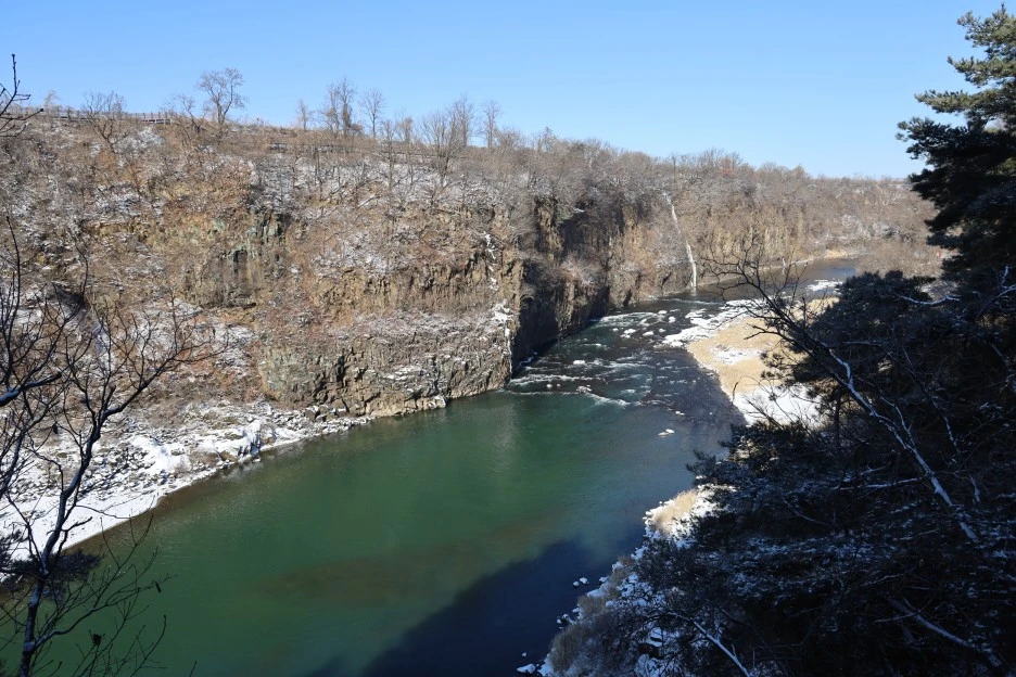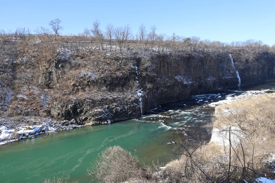 그 규모는 비교할 수도 없이 작지만, 나이아가라 폭포와 같은 원리가 작용되는 폭포라고 한다. 두부 침식이라고 하는데, 두부 모양의 현무암 바위가 눈에 파묻혀 자세한 모습을 관찰할 수는 없었다.
