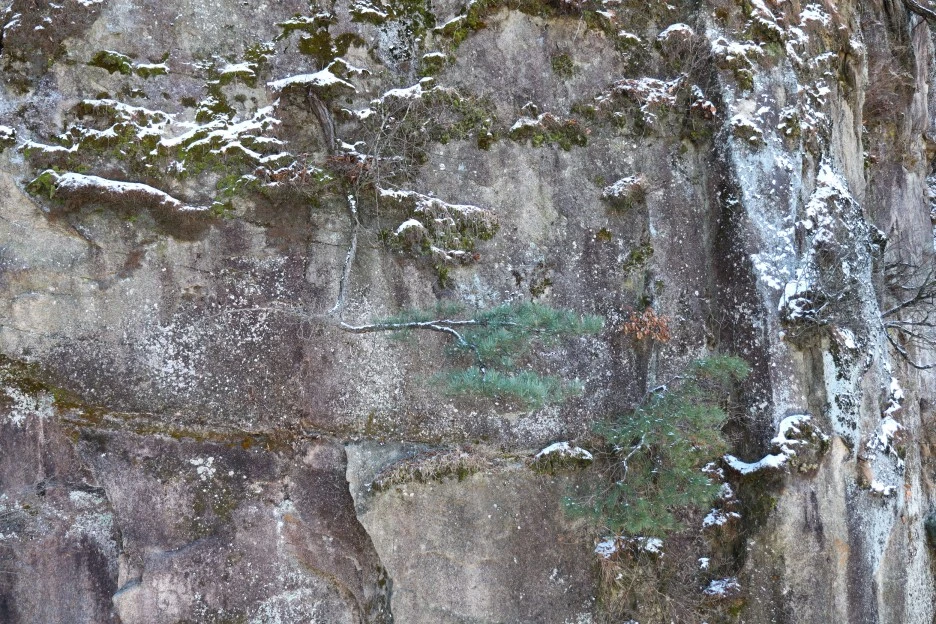다른 나무는 이런 곳에서 오래 못 살아도, 소나무는 살 수 있다. 뿌리가 줄기보다 위에 있고, 나무는 아래쪽으로 뻗어있고, 오른쪽 소나무도 거의 수직이다. 어떻게 이런 모습으로도 살 수 있는지 경이롭기만 하다.