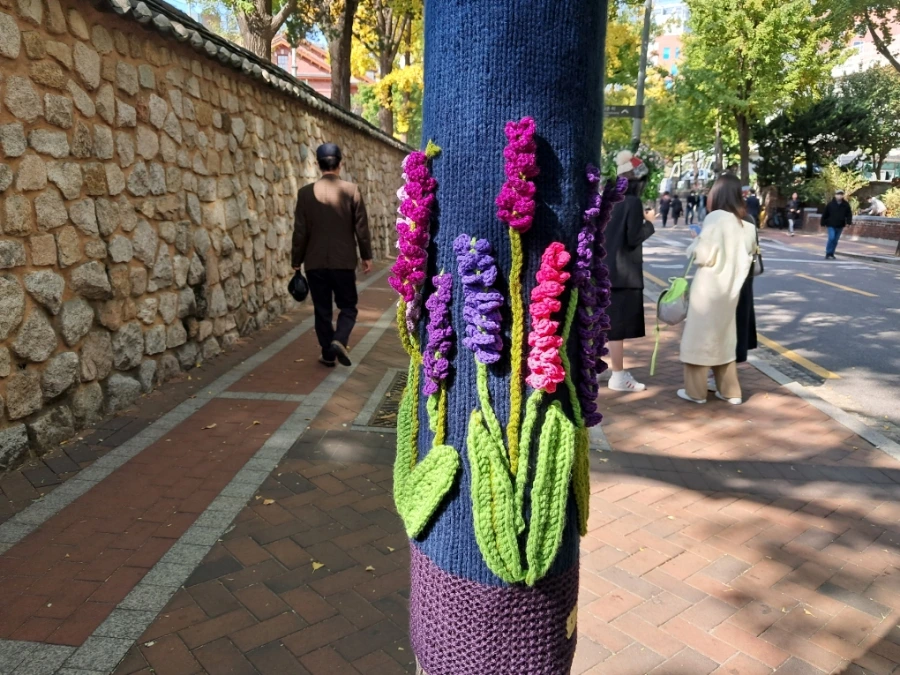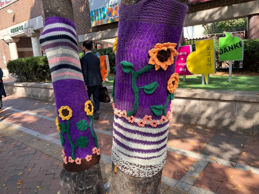 그래피티 니팅으로 겨울 꽃밭 꾸미기