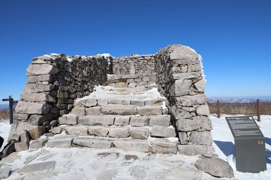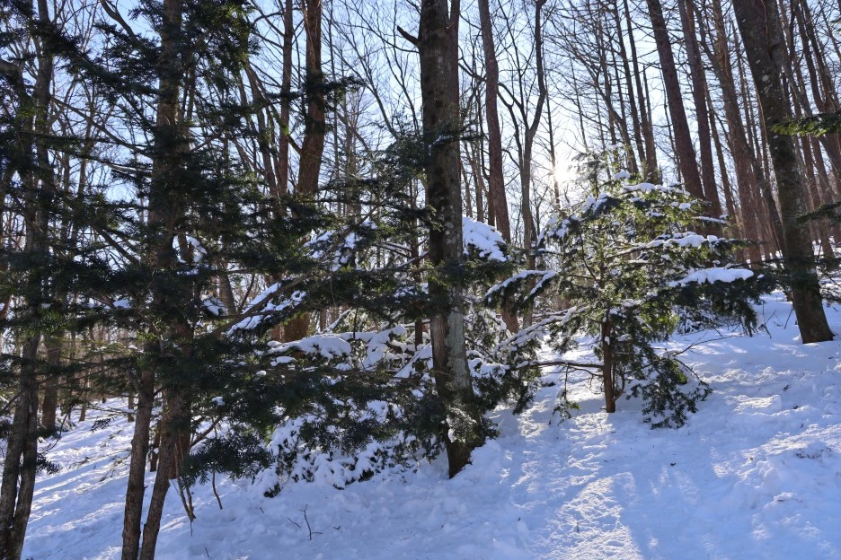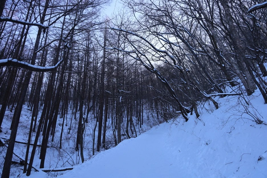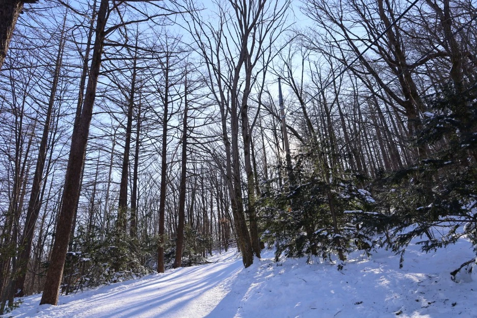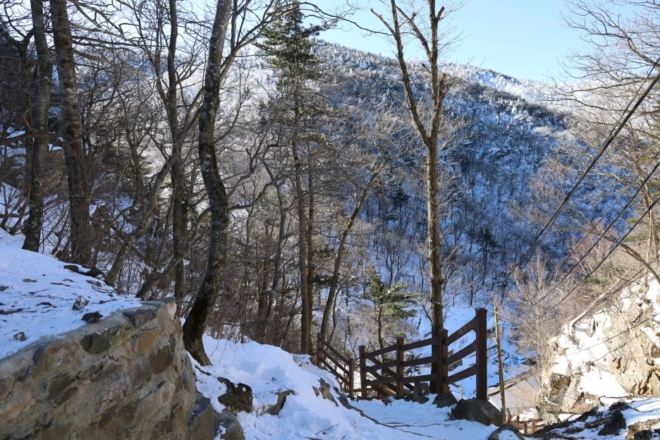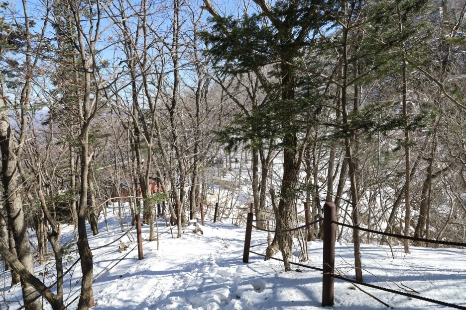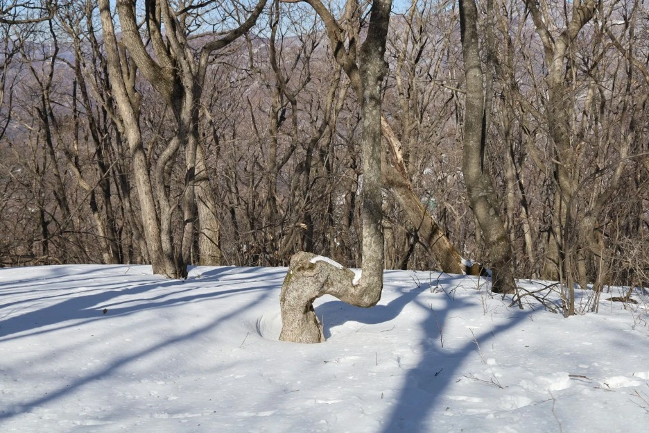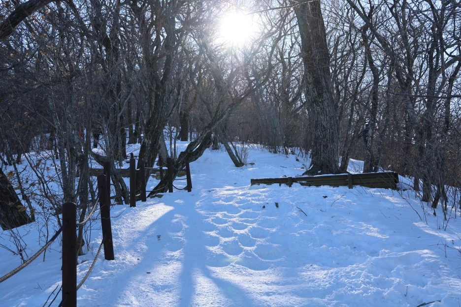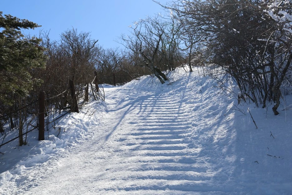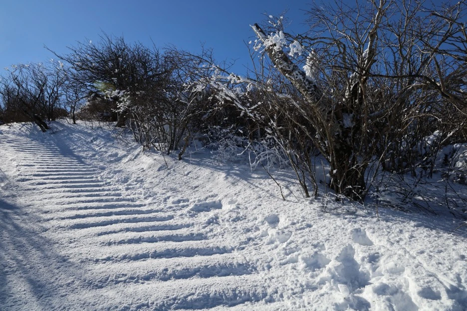 원래 계단이었을까. 아니면 눈 위에 일정하게 밟고 지나간 자국이 만든 무늬일까. 다른 계절에 산행을 하게 되면 꼭 확인해 보아야겠다.