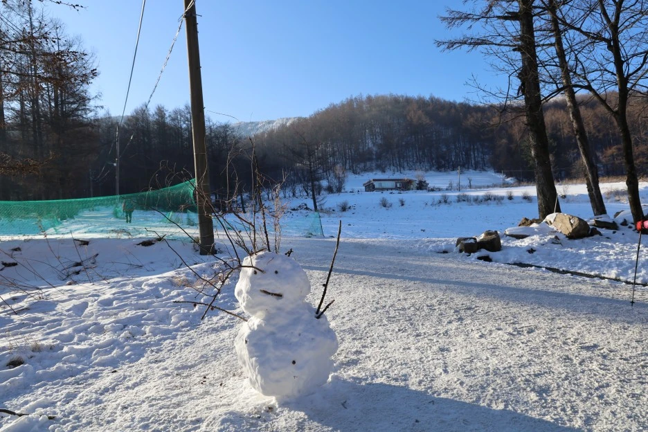 익살스런 눈사람. 내려오는 길에 녹아서 그렇게 된 건지 누가 발로 찼는지 넘어져있었다.