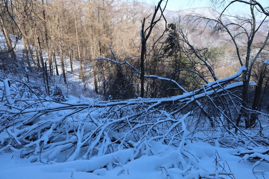탐방객이 많은 임도와 달리 길의 흔적을 찾기 힘들다. 곳곳에 설화를 입은 나무들이 많이 쓰러져 있기도 했다. 간혹 이쪽으로 올라오는 사람들을 만나기도 했다. 길이 막혔을까 봐 살짝 걱정이 되었는데 다행이었다.