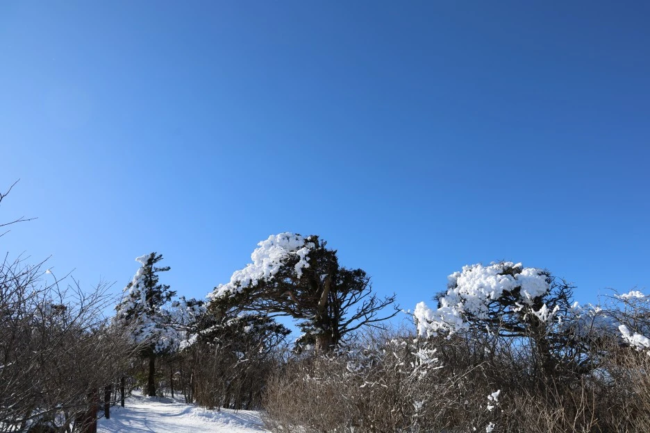 눈꽃이 얼마 없어서 아쉬웠다. 파란 하늘이 배경이라 그나마 감사하다.