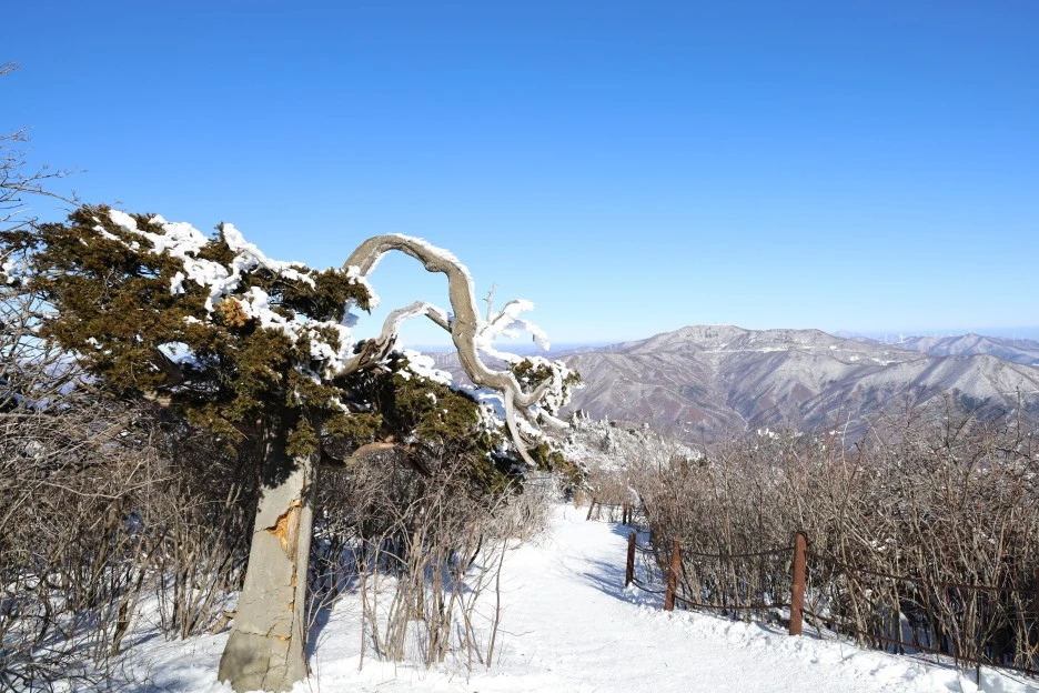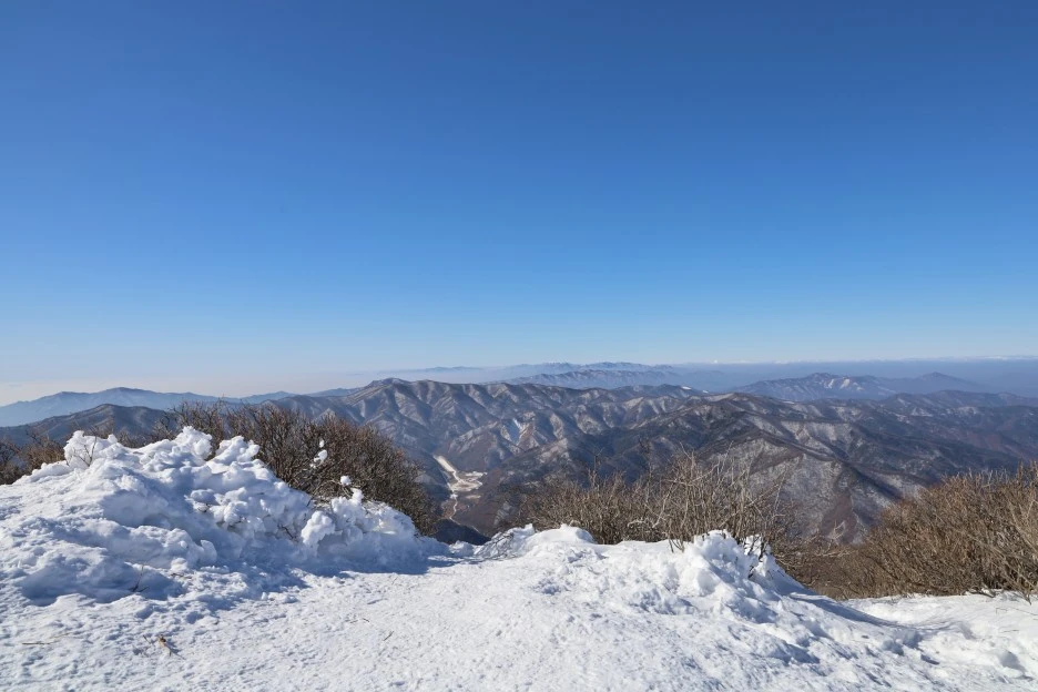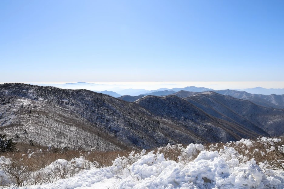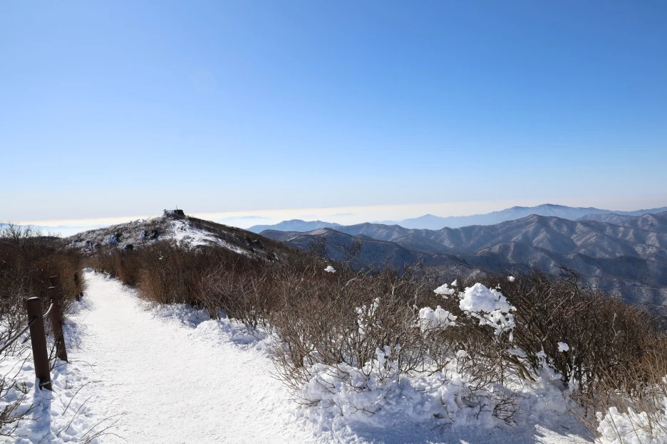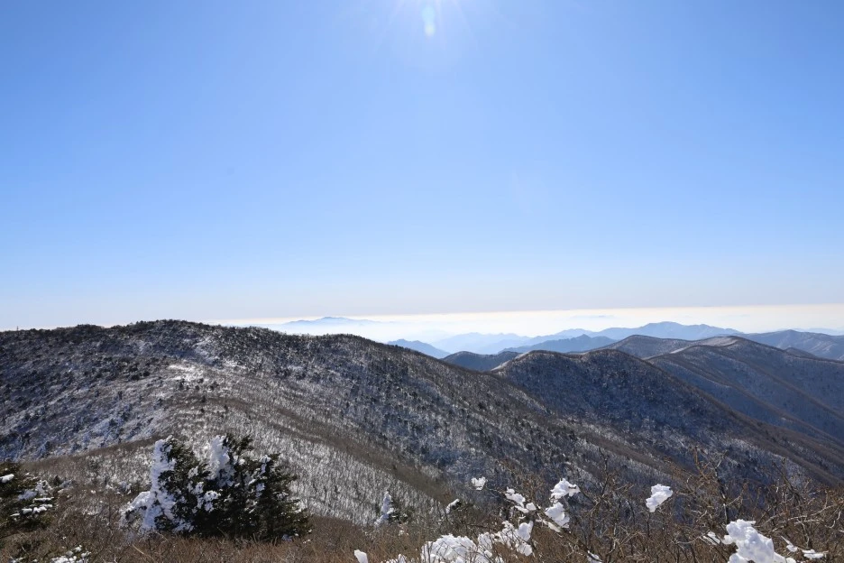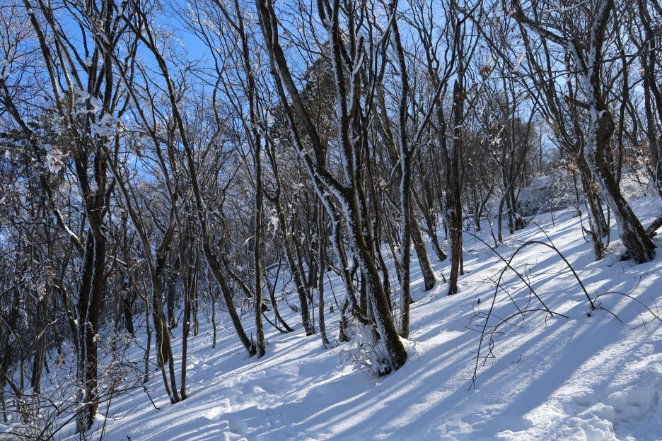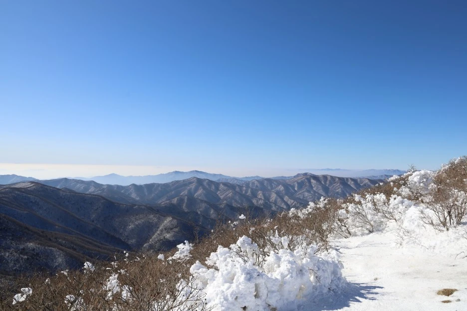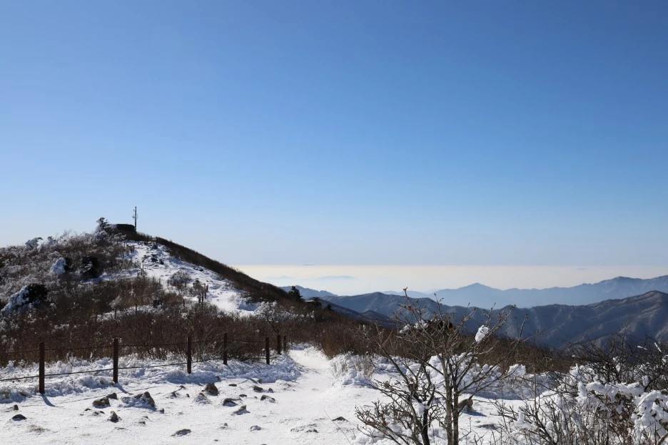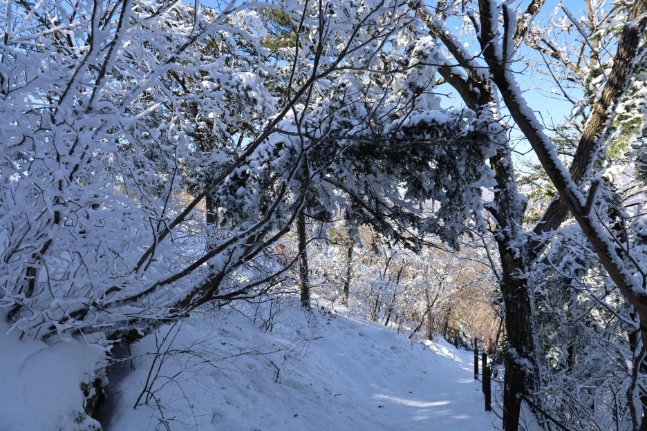 눈은 산의 풍경을 확연하게 바꾸어 버린다. 가을 단풍을 끝으로 빈 가지와 갈색 톤으로 일색인 황량한 산의 풍경을 눈이 부시게 하얀 설국의 세계로 탈바꿈시키는 것은 자연의 요술에 가깝다. 물론 빈 가지가 보여주는 아름다운 선이나, 숲이 가리지 않아 멋지게 드러나는 산의 능선을 더 잘 감상할 수 있는 겨울철 산행도 나쁘지 않지만, 눈이 오고 난 뒤의 하얀 세상에서 만나는 설산의 아름다움은 그때만 만날 수 있는 모습이기에 더 기다려지는 눈 산행이다.