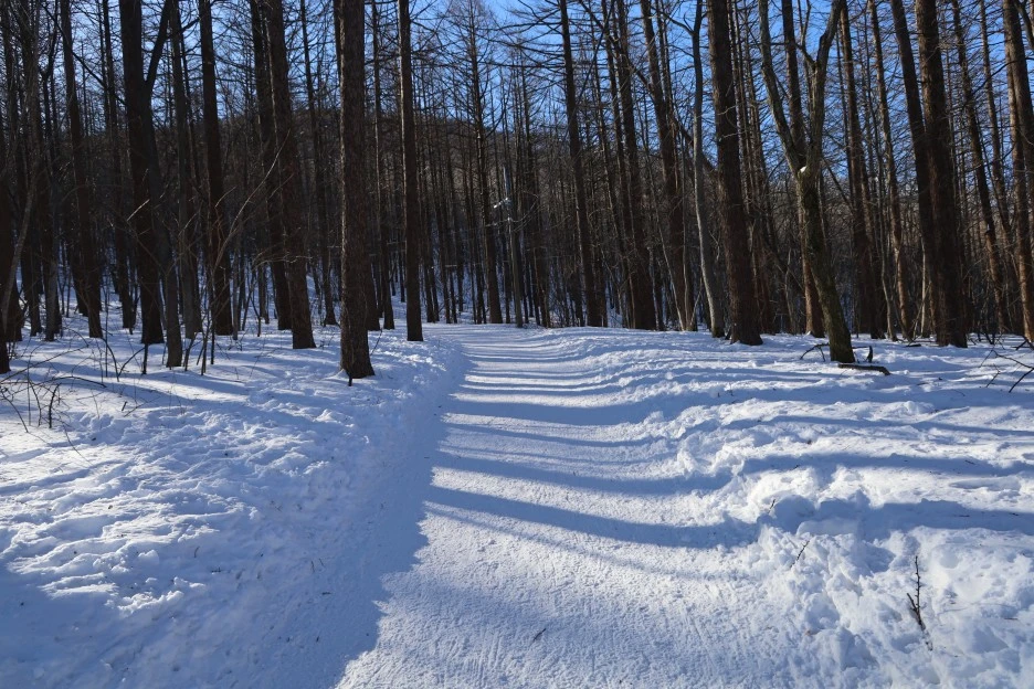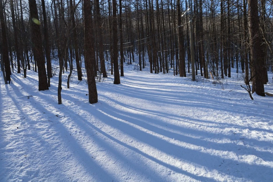 흰 눈밭에 나무들이 스트라이프 무늬를 만들었다. 자연이 선사하는 재미다.