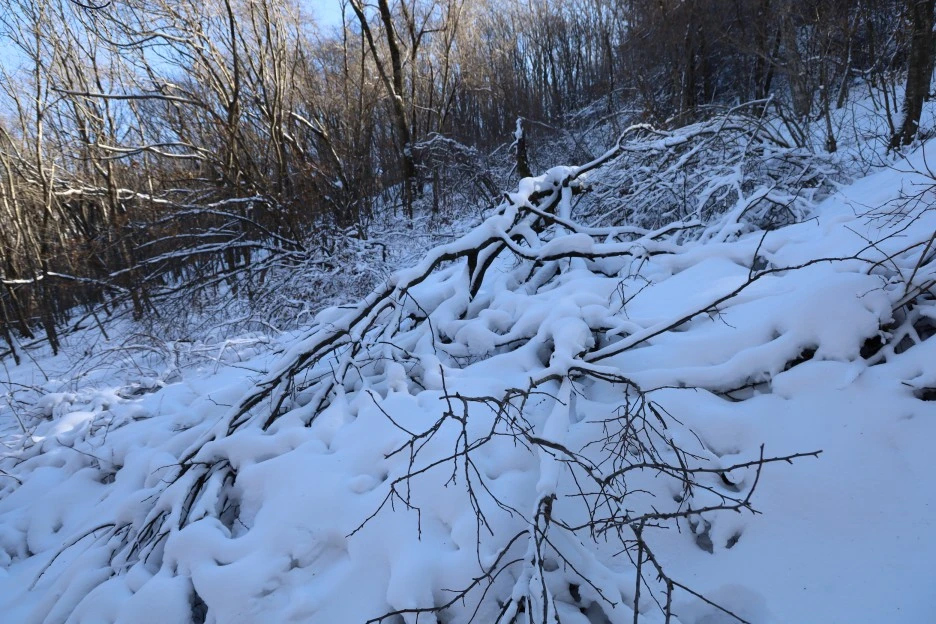 나무에 쌓인 눈은 거의 다 떨어졌지만, 하얀 눈밭이 우리를 반긴다. 겨울에도 산행을 할 수 있는 건강과 체력이 있음에 감사한다.