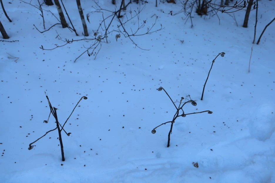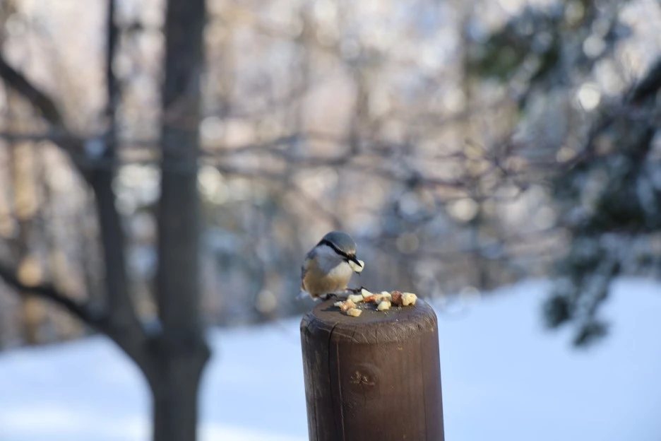 유일사 쉼터의 작은 새들도 여전히 주변에 맴돌고 있었다. 준비해 온 견과류를 울타리 나무에 올려주었더니 눈치 빠른 새 한 마리가 열심히 물고 날아오르기를 반복한다. 작년보다는 새들이 많이 모이지 않았지만, 돌아오는 길에 보니 깨끗이 없어져서 기분이 좋았다.