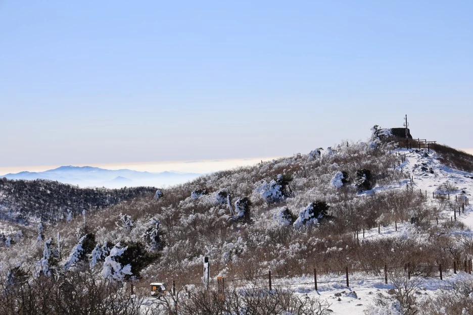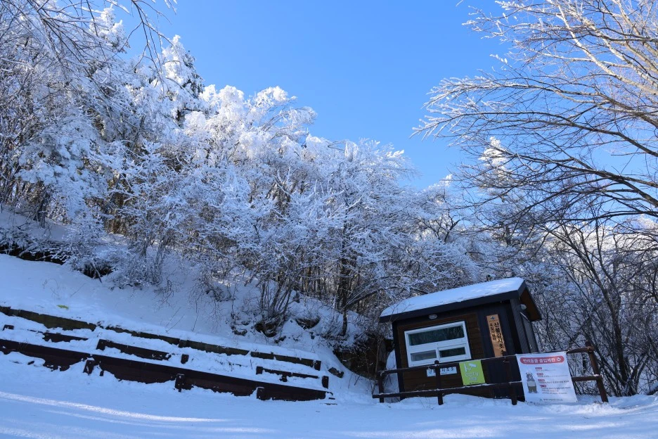 설국 속에 눈 요정이라도 살고 있을 것 같은 산불감시초소의 모습이 정답다.