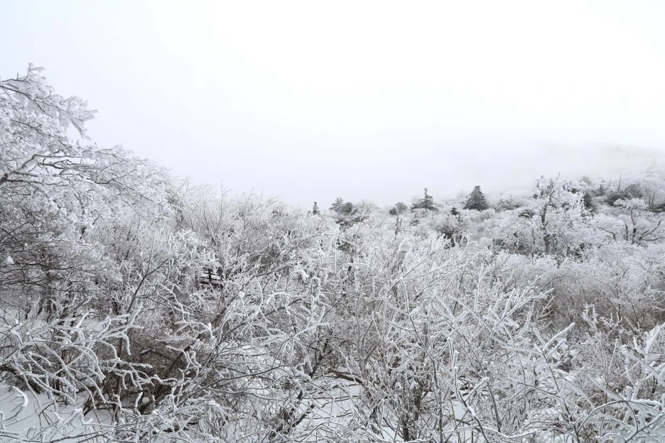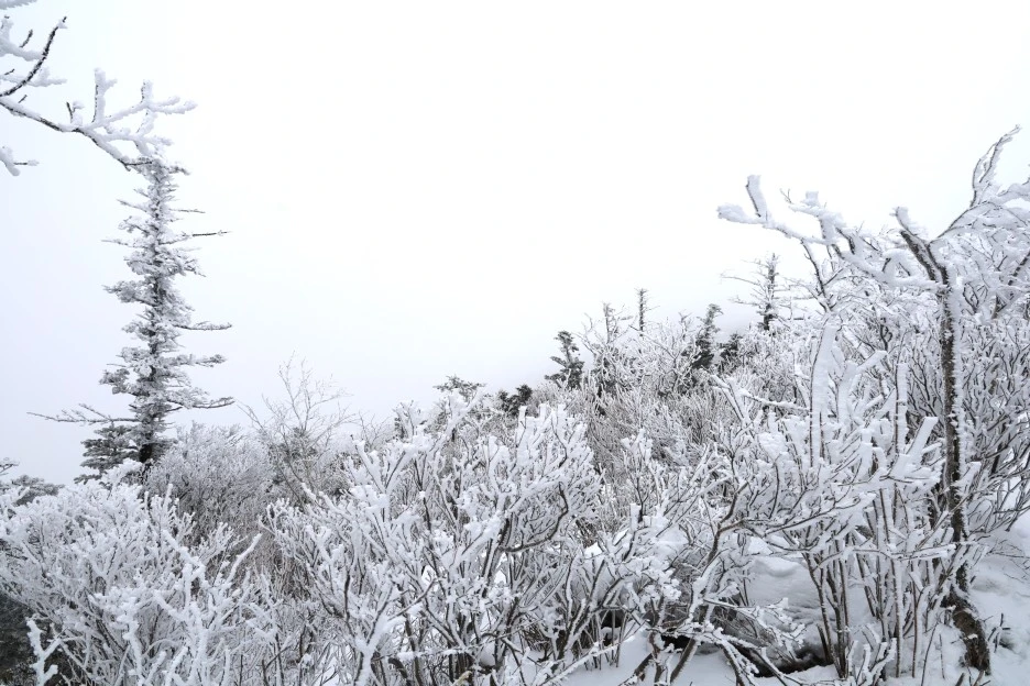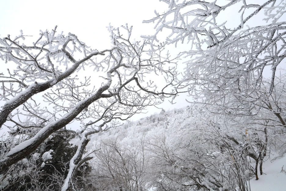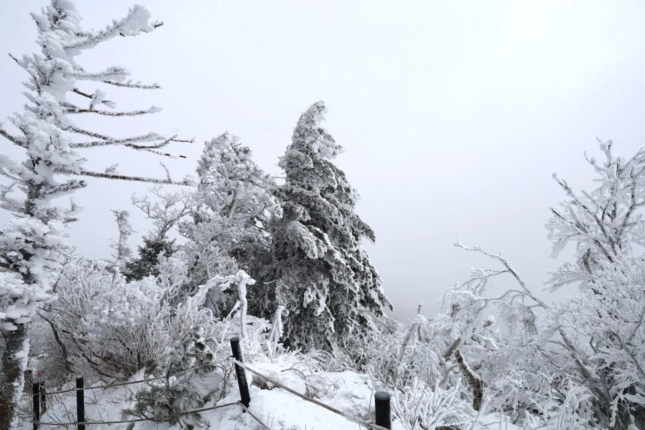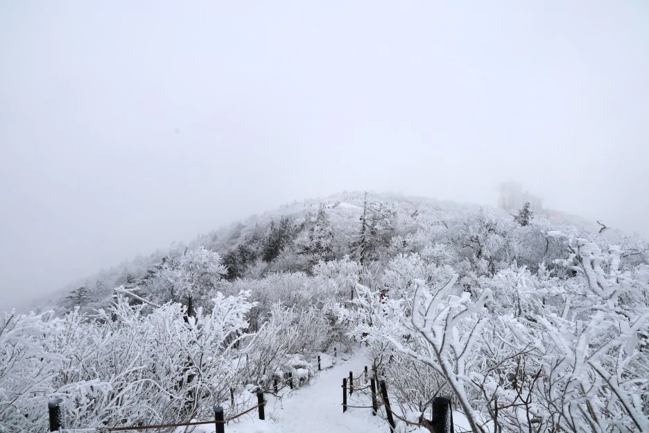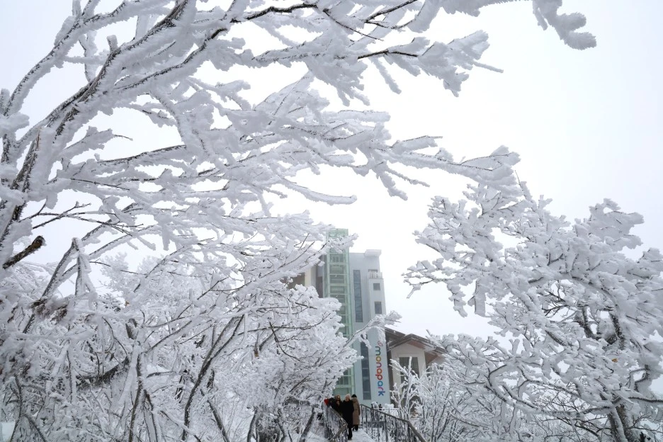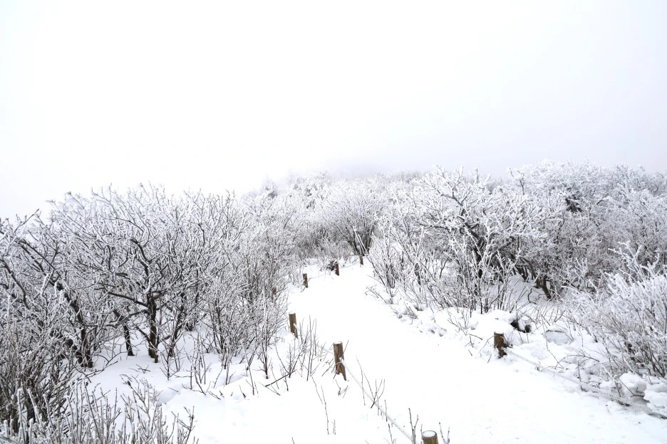 진고개에서 본 정도의 하얀 눈산이다. 부드러운 눈꽃을 손으로 만지면 양털같은 감촉일 듯한 착각을 하게 된다. 예쁘다.