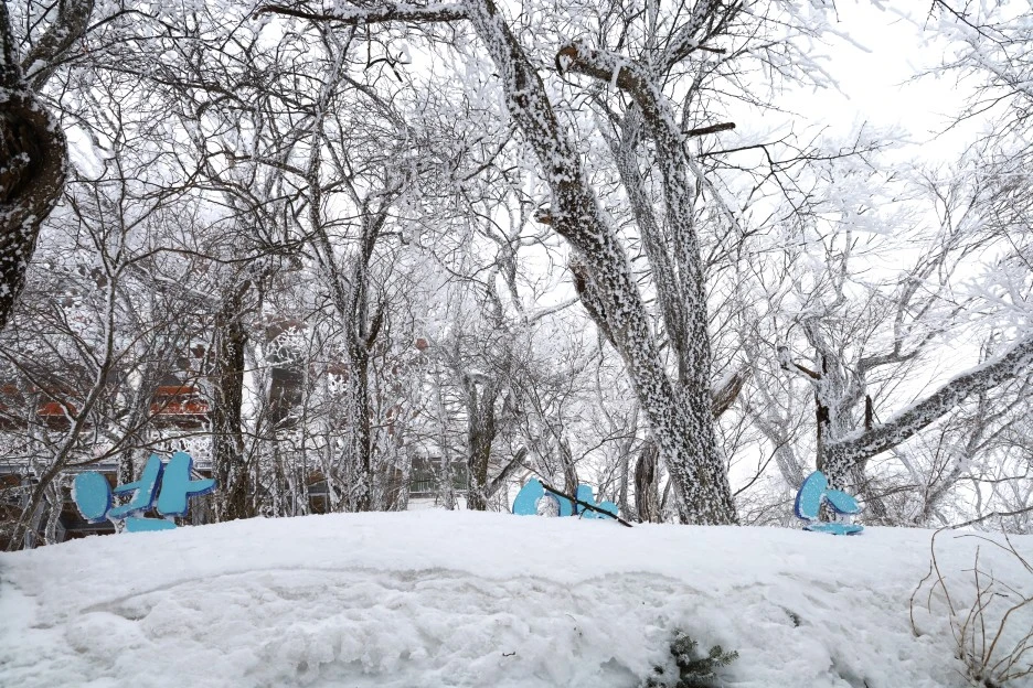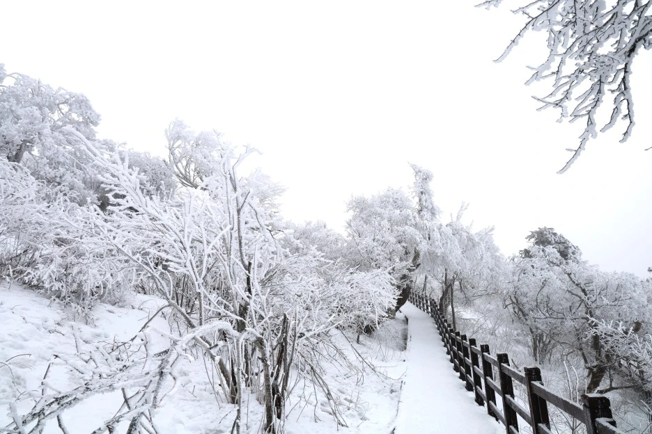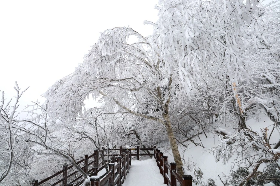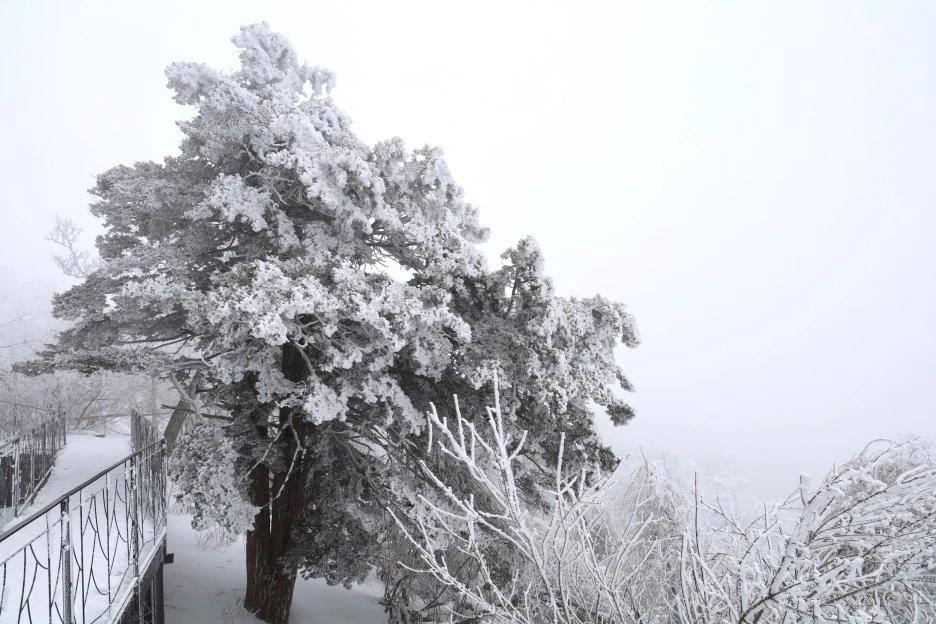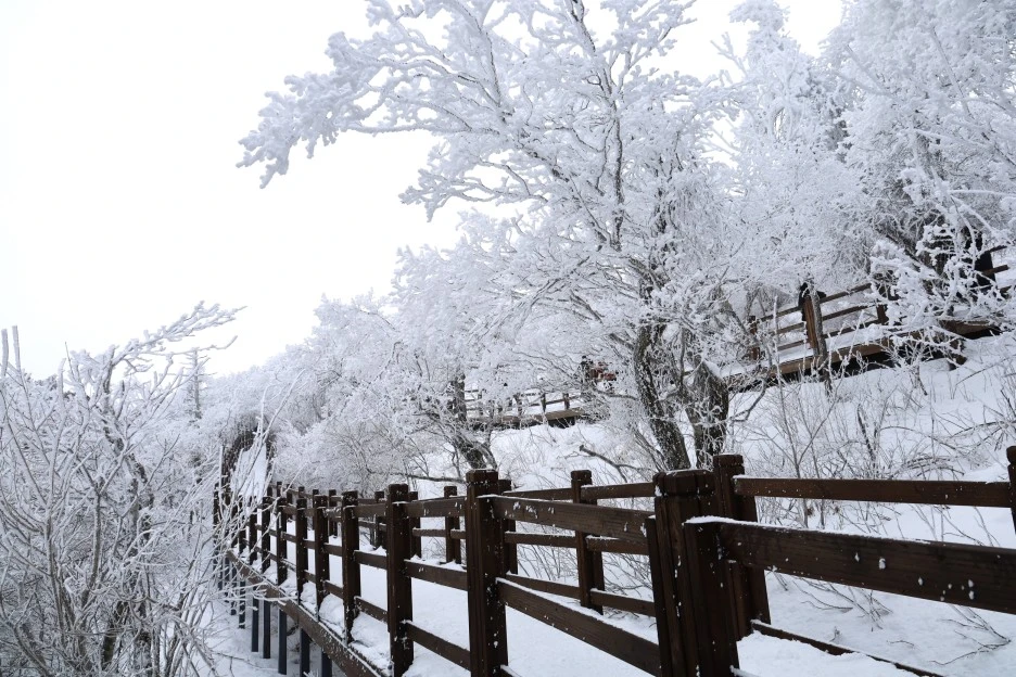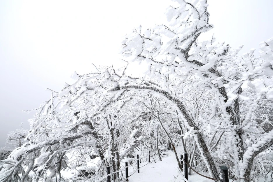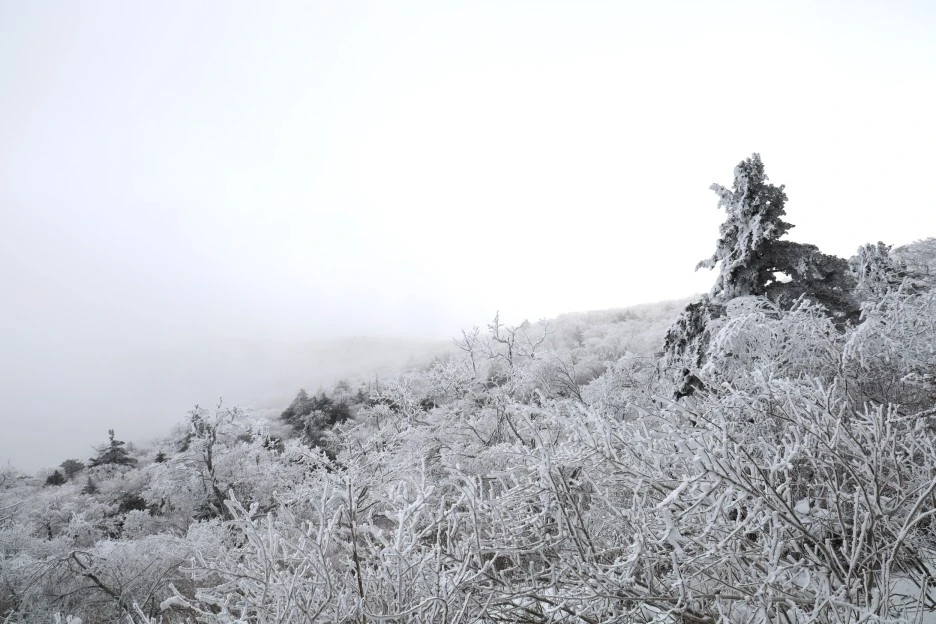 진고개에서 본 정도의 하얀 눈산이다. 부드러운 눈꽃을 손으로 만지면 양털같은 감촉일 듯한 착각을 하게 된다. 예쁘다.