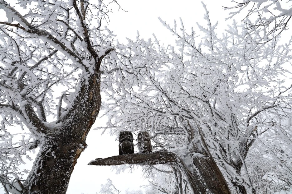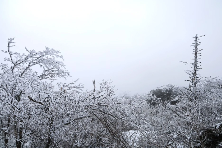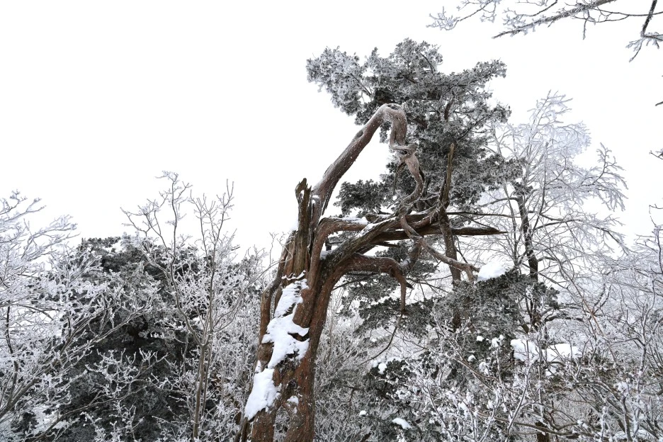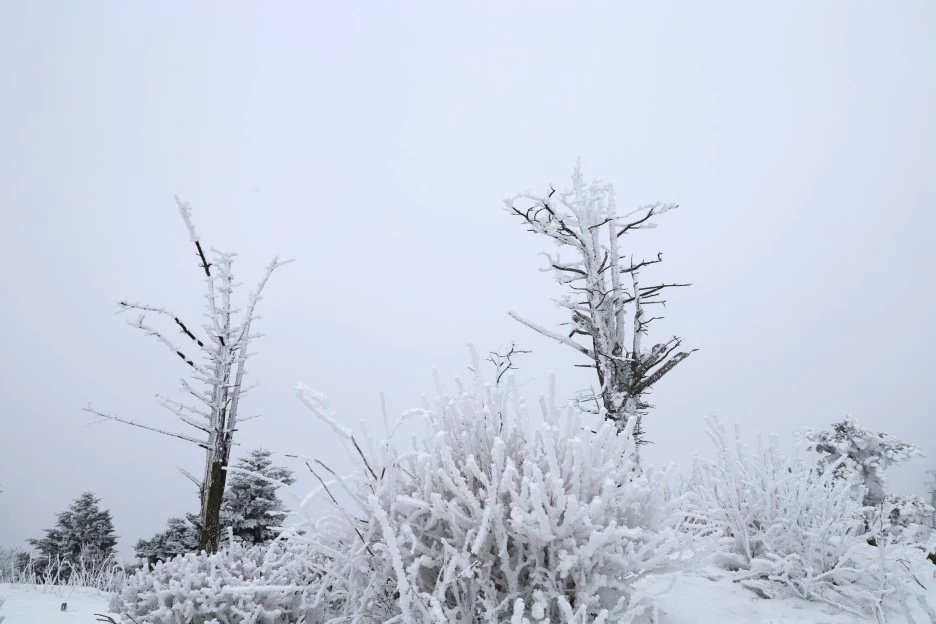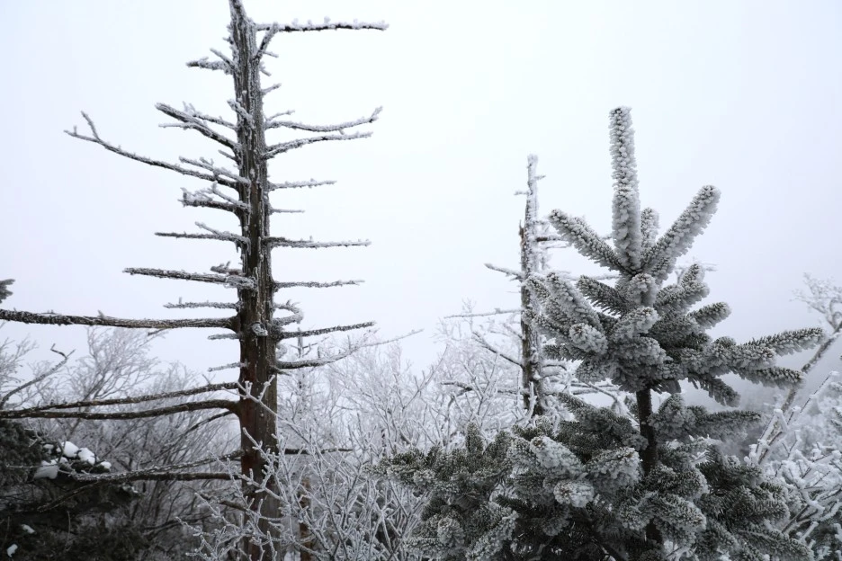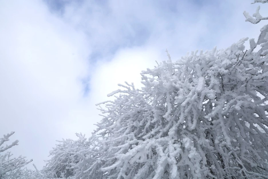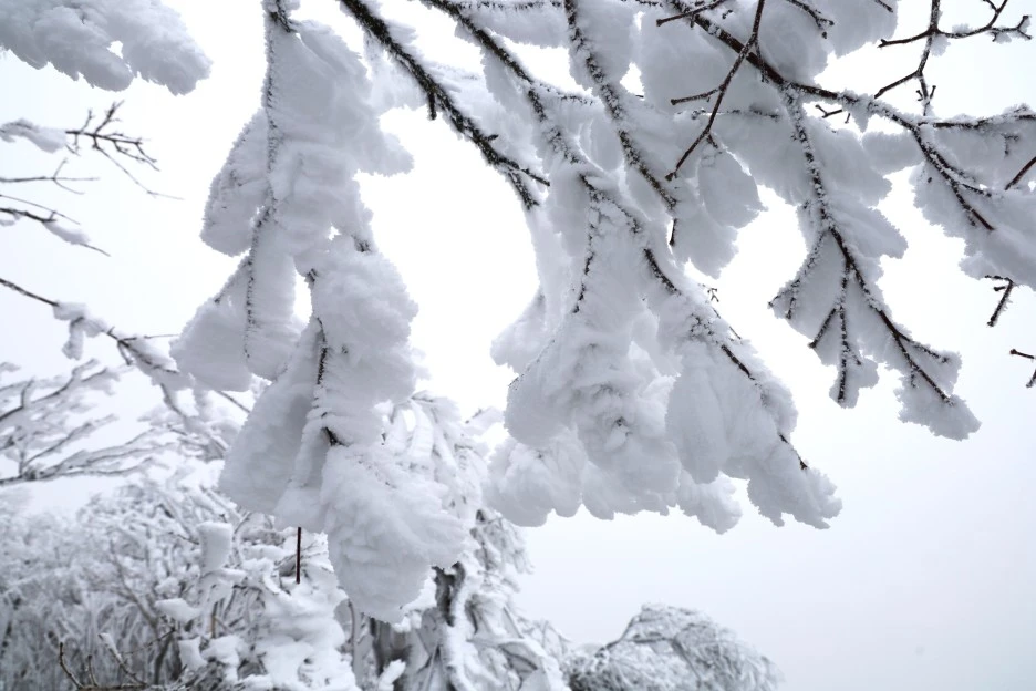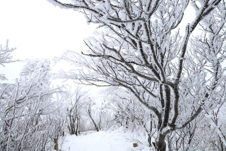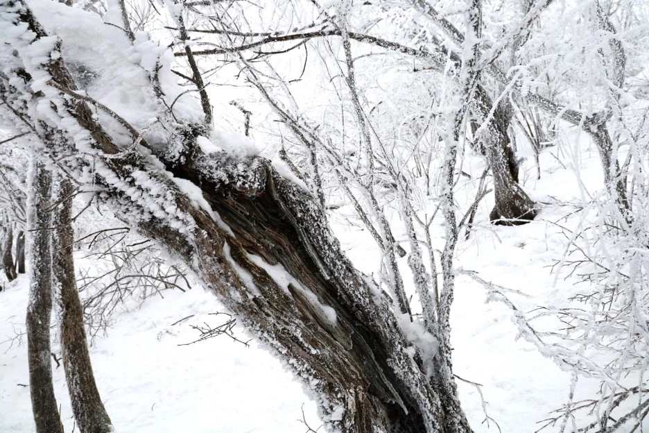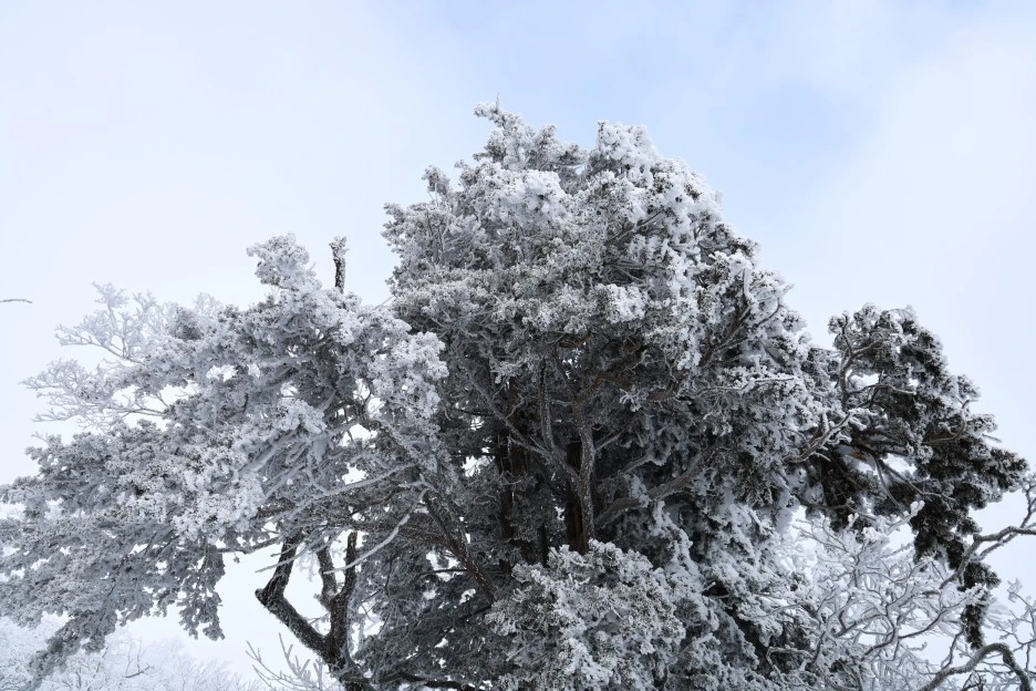 바람의 결이 뚜렷한 상고대가 잘 형성되어 있었다. 나무는 가지보다 더 두꺼운 상고대를 훈장처럼 자랑스럽게 달고 우리를 반갑게 맞이하였다.
