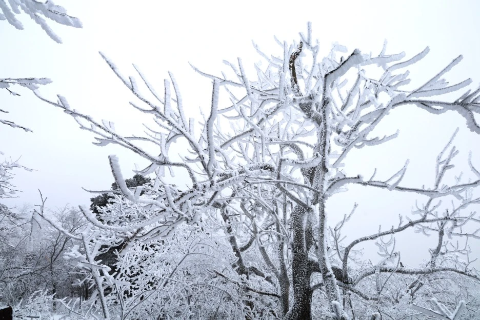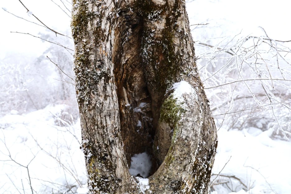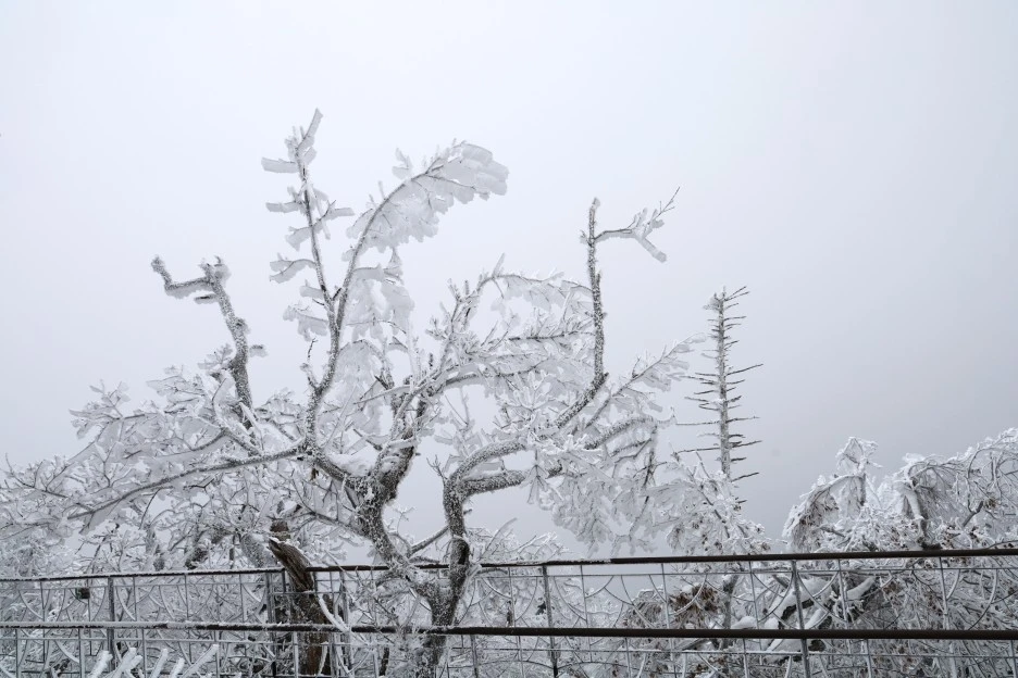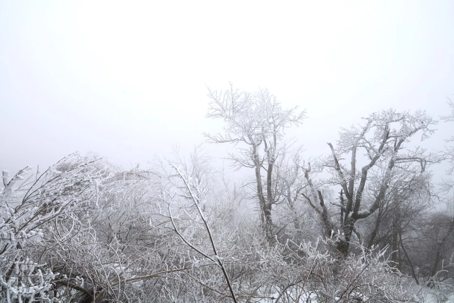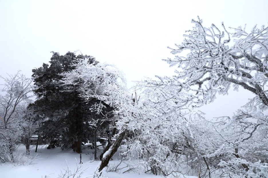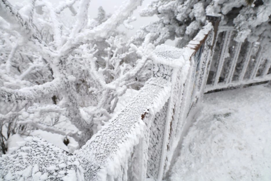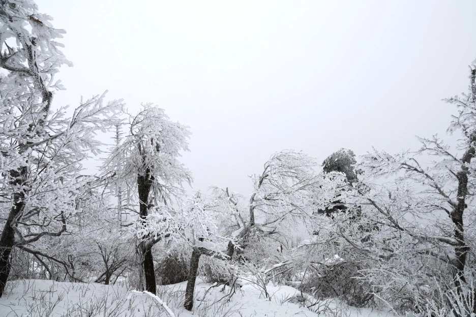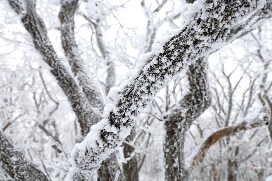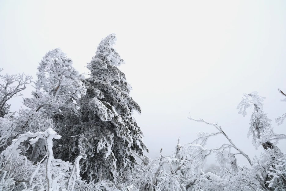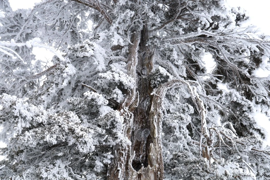 바람의 결이 뚜렷한 상고대가 잘 형성되어 있었다. 나무는 가지보다 더 두꺼운 상고대를 훈장처럼 자랑스럽게 달고 우리를 반갑게 맞이하였다.