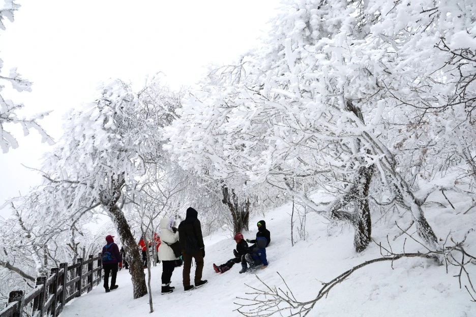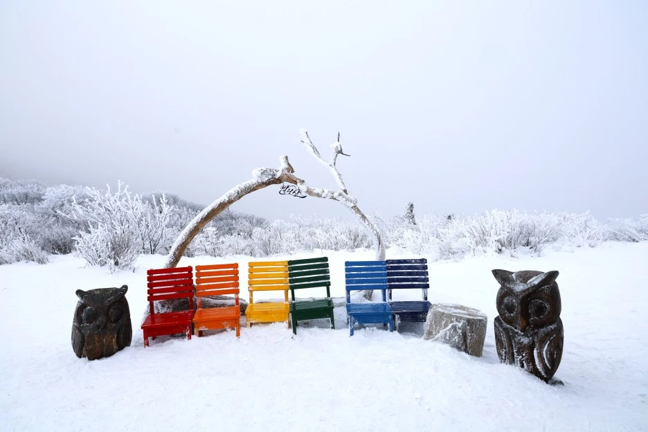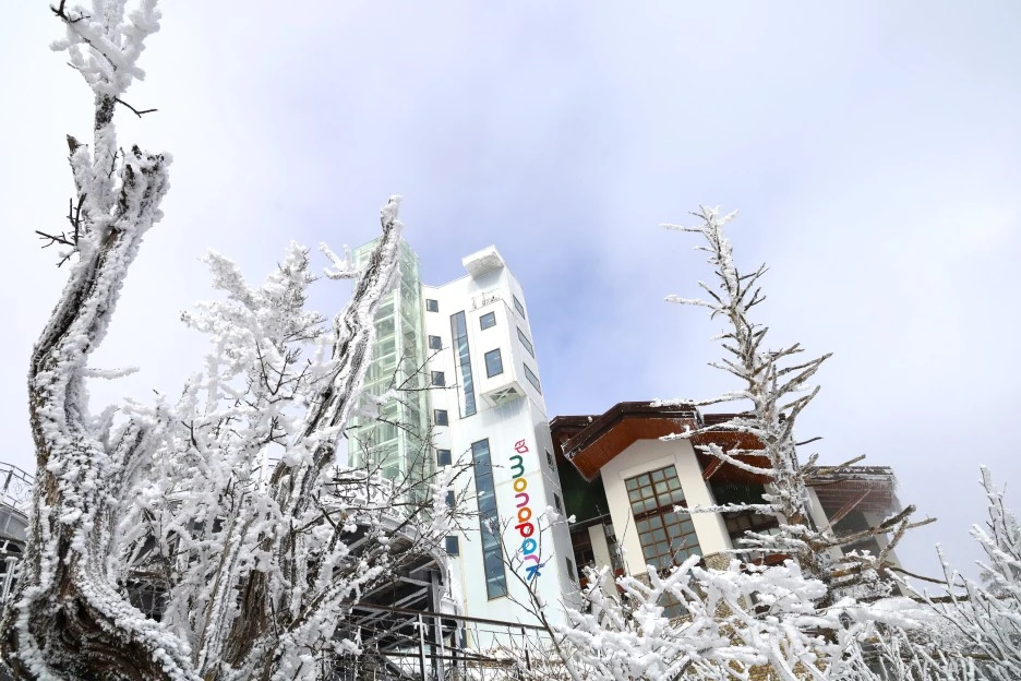 생전 처음 보는 눈 속에서 아이들이 뒹굴고, 눕고, 미끄러지는 온 몸으로 눈을 즐기고 있었다. 이 행복한 시간들을 연신 스마트폰에 저장하는 엄마, 흐뭇한 미소로 지켜보는 아빠. 본국에 돌아가서도 이곳 발왕산의 설국 체험을 즐겁게 기억하겠지.