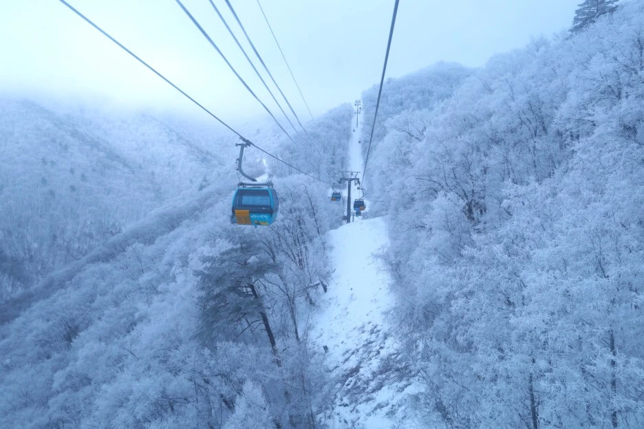 용평 모나파크 도착이 9시 50분. 금요일 오전인데도 되돌아 나왔던 날보다 겨우 한 시간 이른 시간인데 생각보다 밀리지 않았다. 더구나 주차장도 여유가 있었다. 하늘은 온통 회색이고 간간히 눈도 흩날리는 날씨지만 상고대는 있겠지라는 생각으로 재빨리 준비를 해서 승강장으로 향했다.