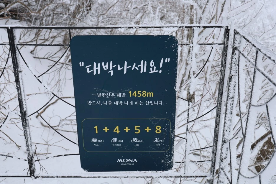 중국 관광객을 겨냥한 안내판인 것 같다. 1458m를 적절히 잘 이용했다.
