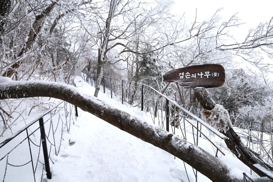 혹시나 통제가 풀렸을까 하고 왔는데. 입구까지 가서는 대설주의보 입산금지를 확인한다. 어쩔수 없이 돌아선다. 계단에 눈이 쌓인 것을 보니 전날 온 눈이 문제가 아니라 그 전에 온 눈의 양이 대단했나 보다. 러셀을 할 수 없을 만큼 많이 왔을까.