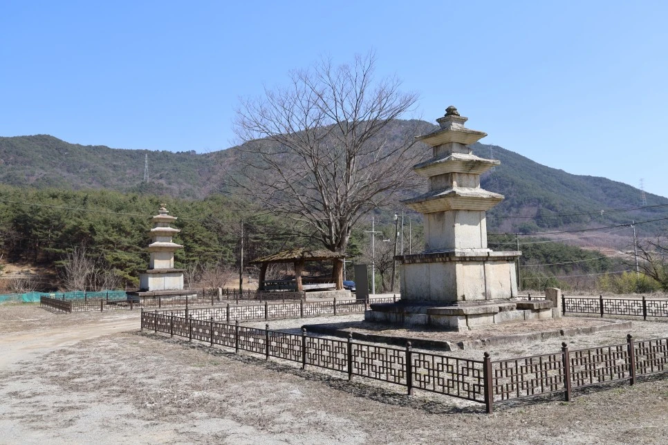 단속사 터에는 전형적인 통일신라 시대의 양식인 삼층석탑 두 기가 남아있다.