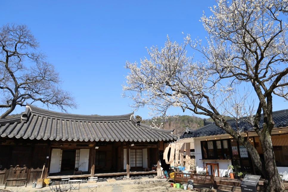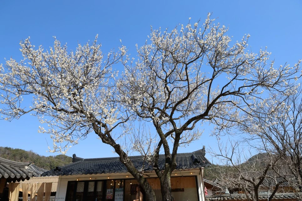 카페 마당에 들어서니 이씨매라고 부르는 150년 정도 된 하얀 매화나무가 시선을 사로잡았다.