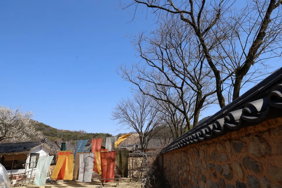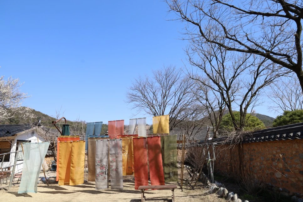 마당에는 천연 염색을 한 때깔 고운 천들이 바람에 나부끼며 운치를 더하고 있었다.