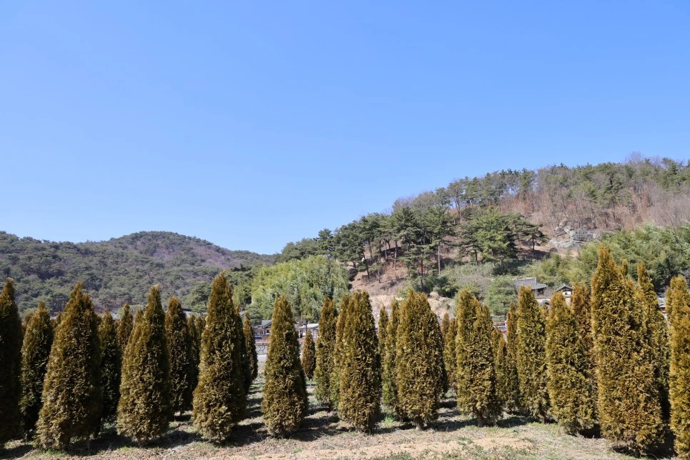 산이 마을을 연꽃잎처럼 둘러싸고 있다고 했는데, 나지막한 산들이 마을을 빙 둘러싸고 있었다.