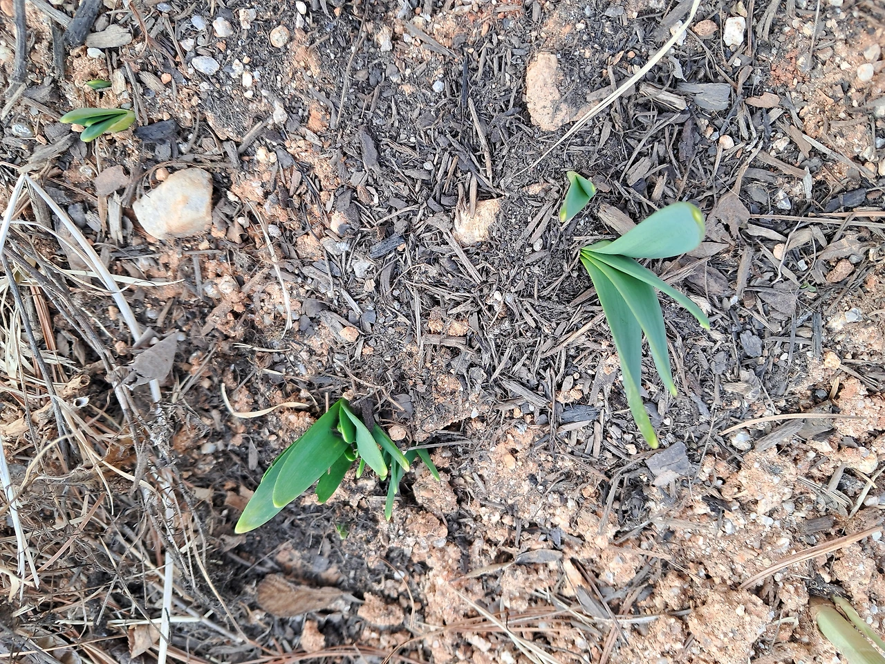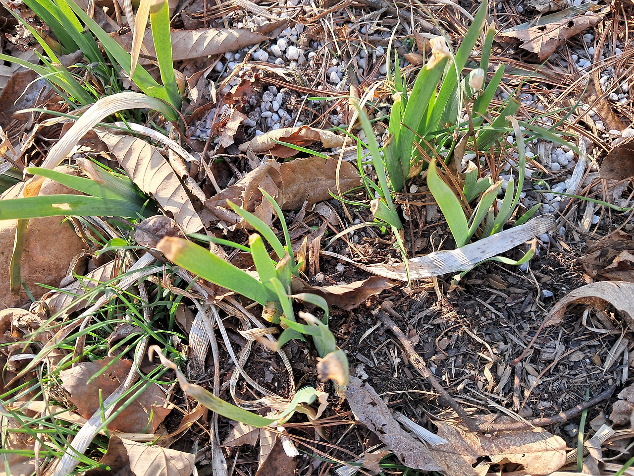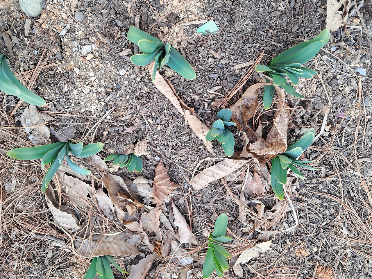 화단의 흙 사이로 올라오는 새싹들을 손으로 만지작거리고, 덮어준 낙엽 아래에 뭔가 초록빛이 보이지 않는지 쑤셔보기도 하고.
