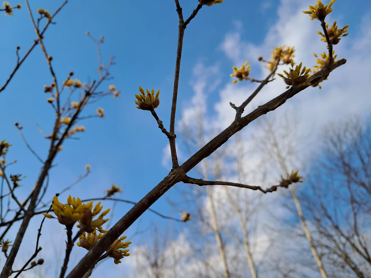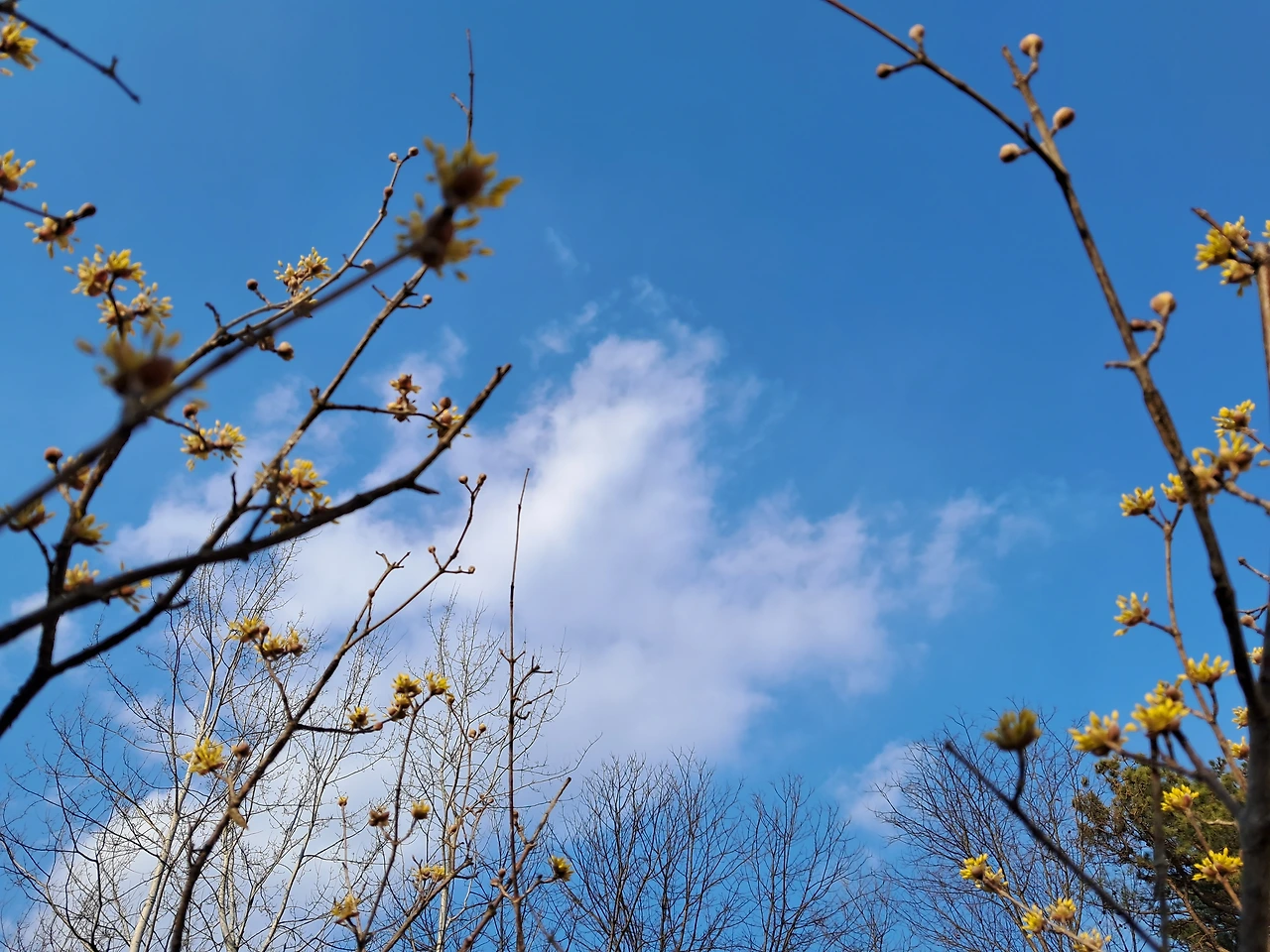 언제 피려나 감이 안 오던 산수유도 어느 날 갑자기 노란 꽃잎이 터졌다.