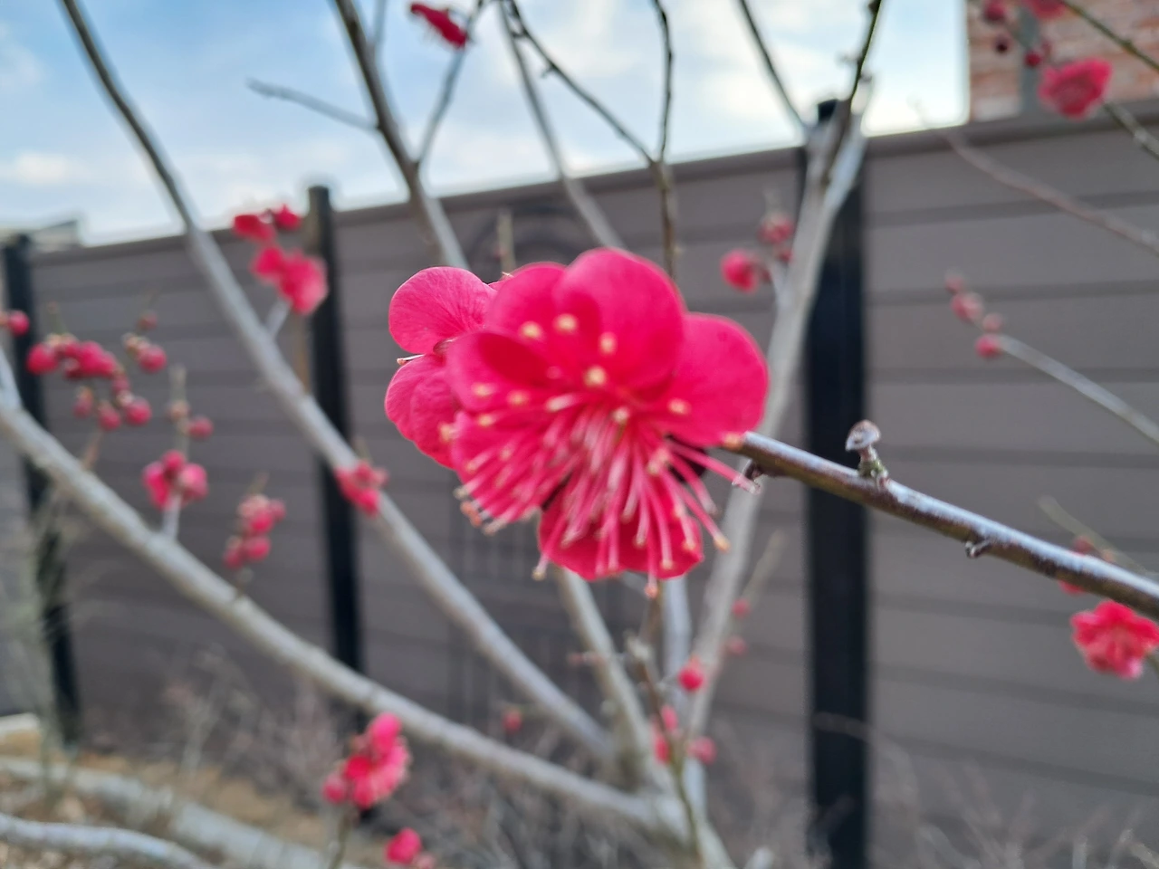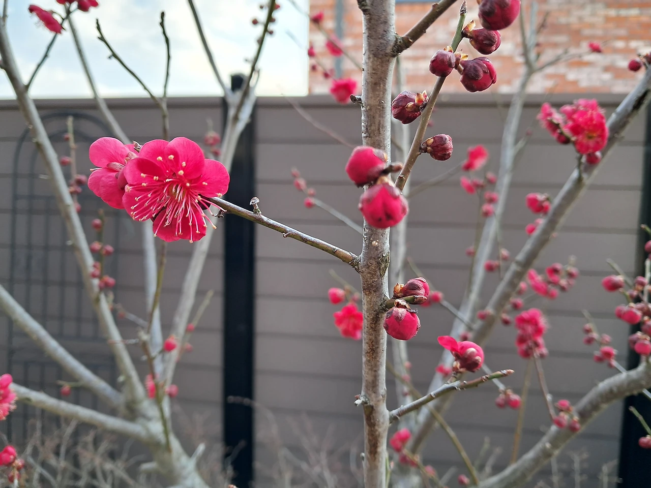 한참을 뜸 들이던 홍매화도 제법 피었다.