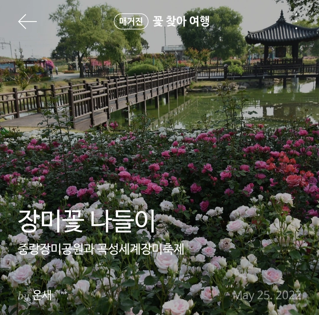장미를 좋아해서 중랑천과 곡성 장미 축제를 가기도 했다. 남편이 사진 찍기를 좋아해서 많이 찍어서 '꽃 찾아 여행' 글을 쓰기도 했다.
