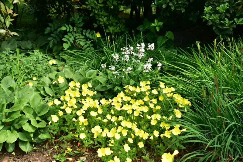 전주 수목원에서도 화단에 자리 잡은 노랑 낮달맞이꽃 무리를 만났다.