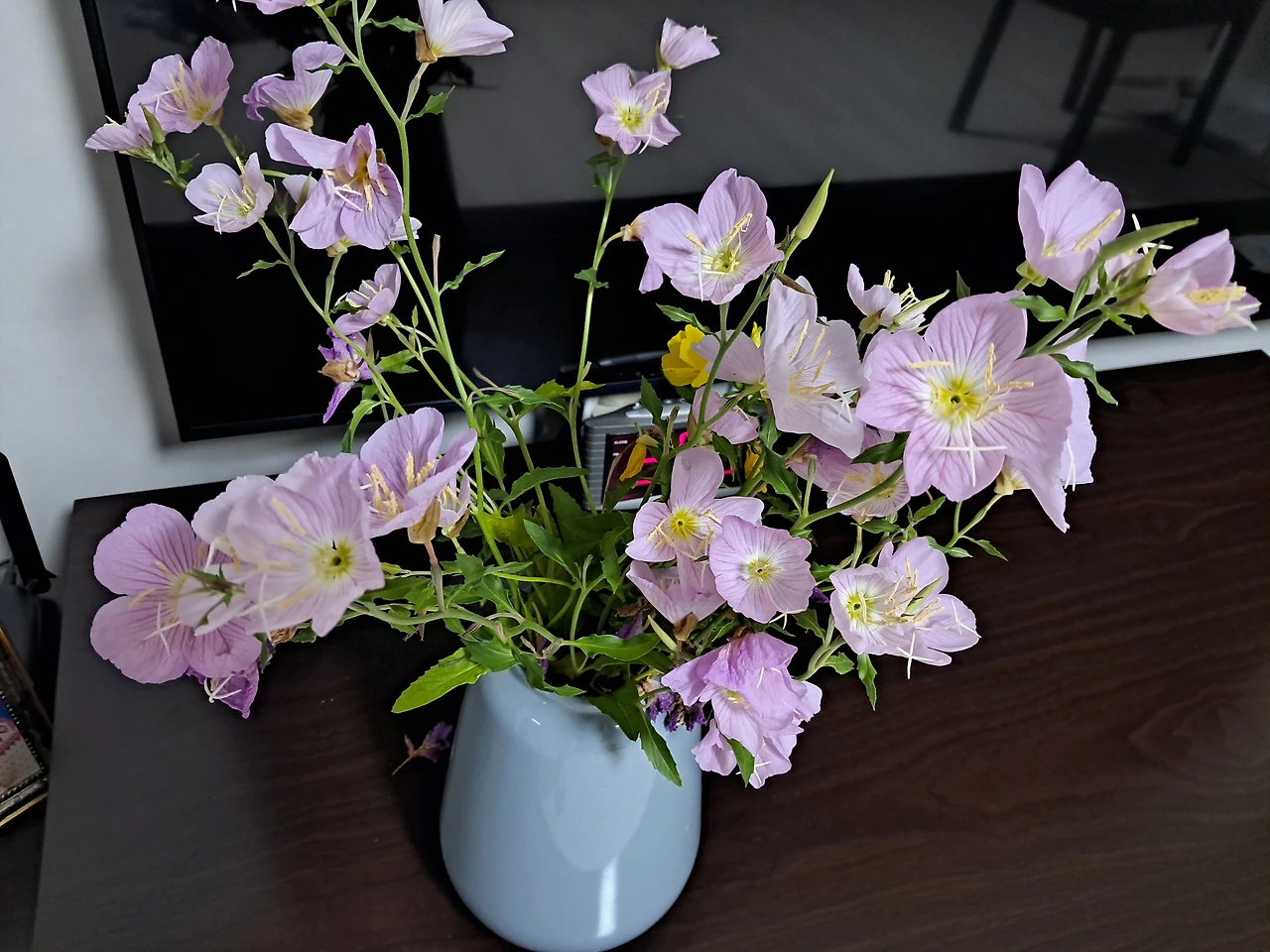 드디어 분홍 낮달맞이가 먼저 피고, 며칠 있다가 노랑 낮달맞이도 피기 시작하더니 화단 가득 존재감을 나타낸다.